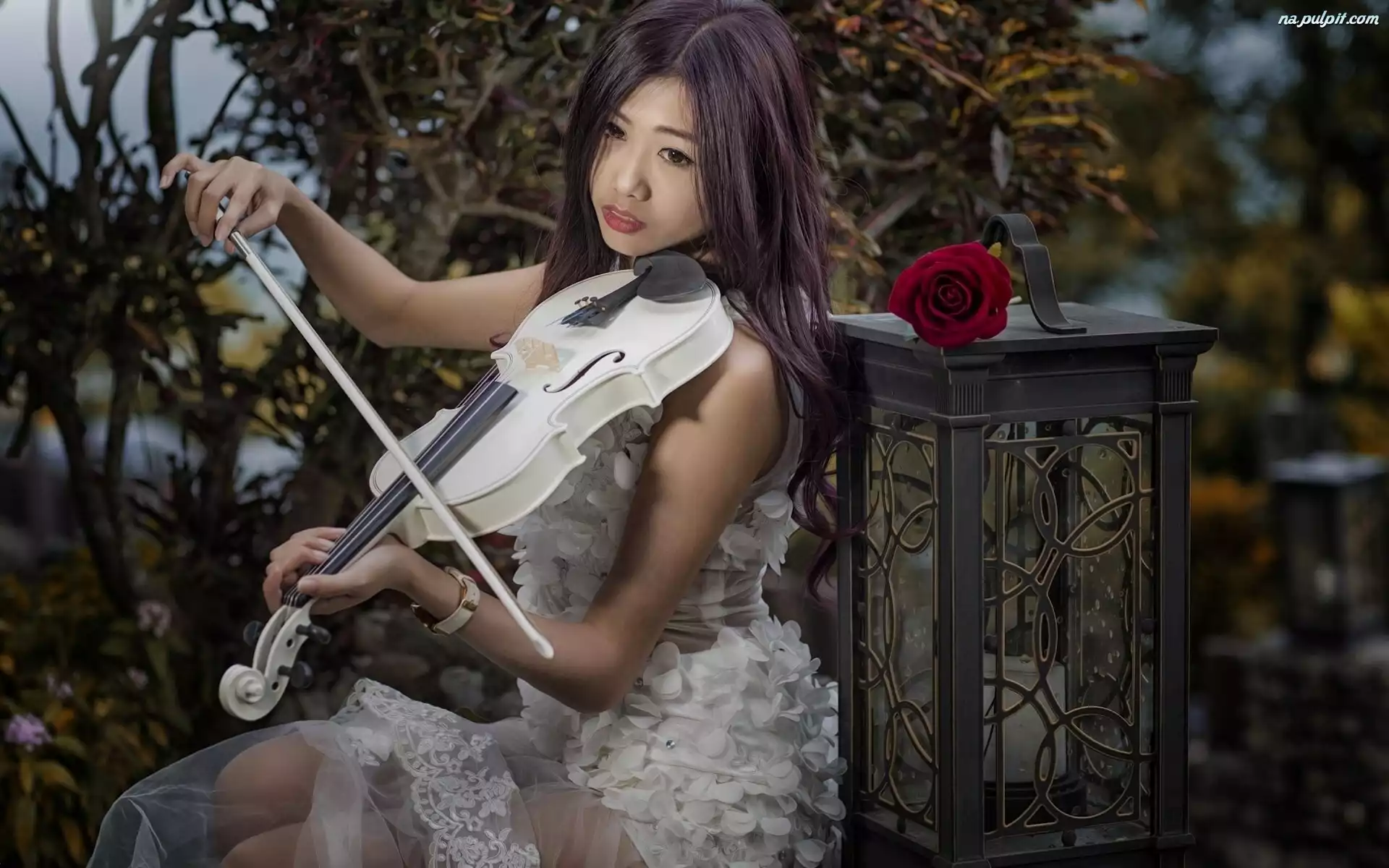 Ogród, Skrzypce, Dziewczyna, Róża Na Pulpit