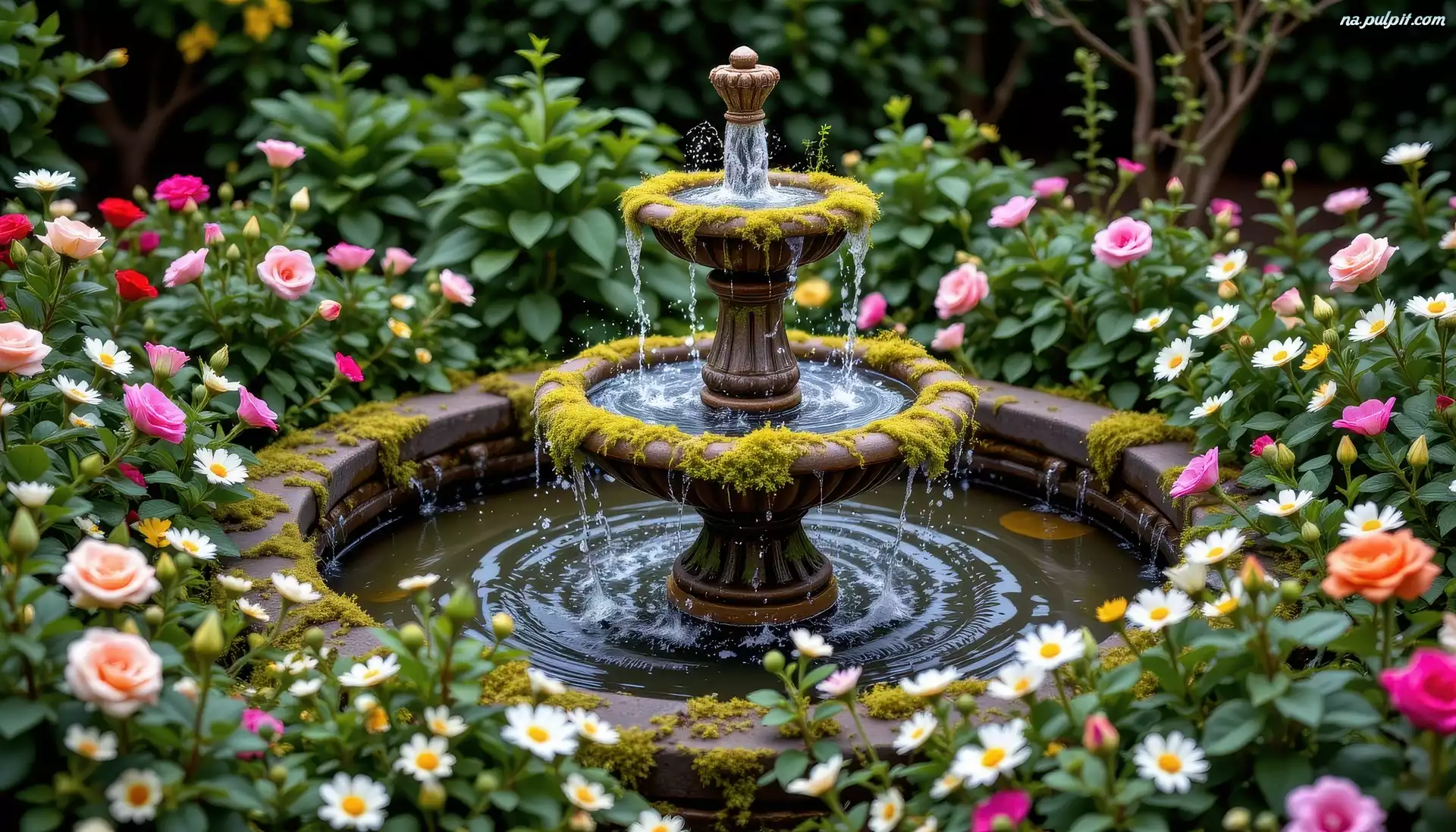 Fontanna, Kolorowe, Kwiaty, Ogród Na Pulpit