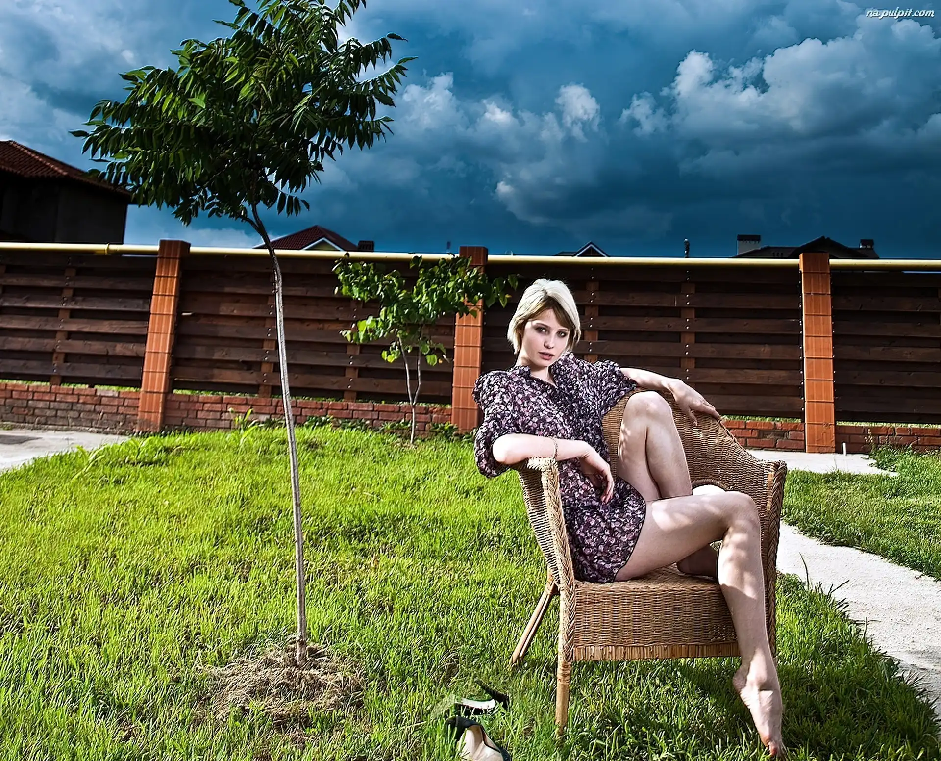 Ogród, Siedząca, Kobieta, Chmury Na Pulpit
