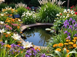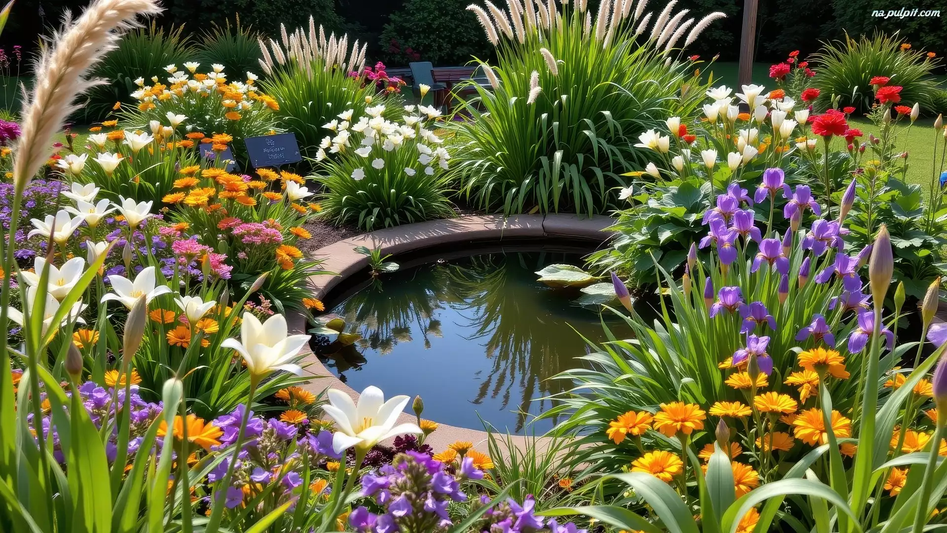 Ozdobne, Kwiaty, Kolorowe, Ogród, Oczko, Wodne, Trawy Na Pulpit