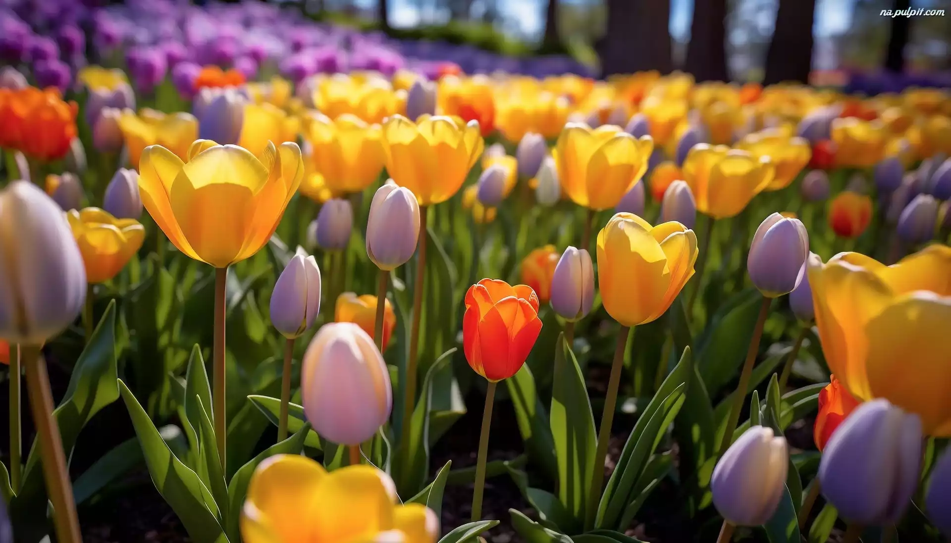 Kolorowe, Rozświetlone, Tulipany, Ogród Na Pulpit
