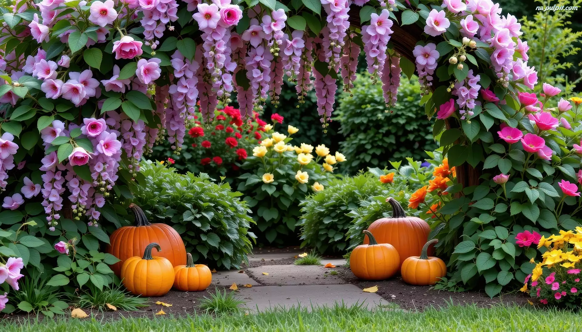 Dynie, Ogród, Kwiaty, Grafika AI Na Pulpit