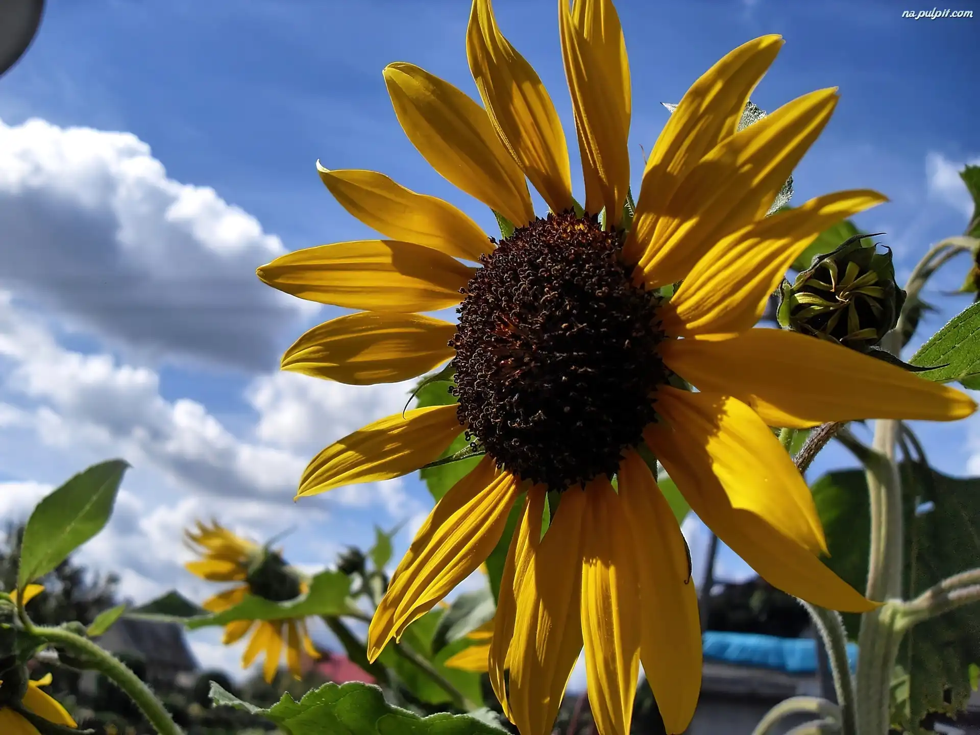 Ogród, Niebo, Chmury, Roślina, Lato, Słonecznik Na Pulpit
