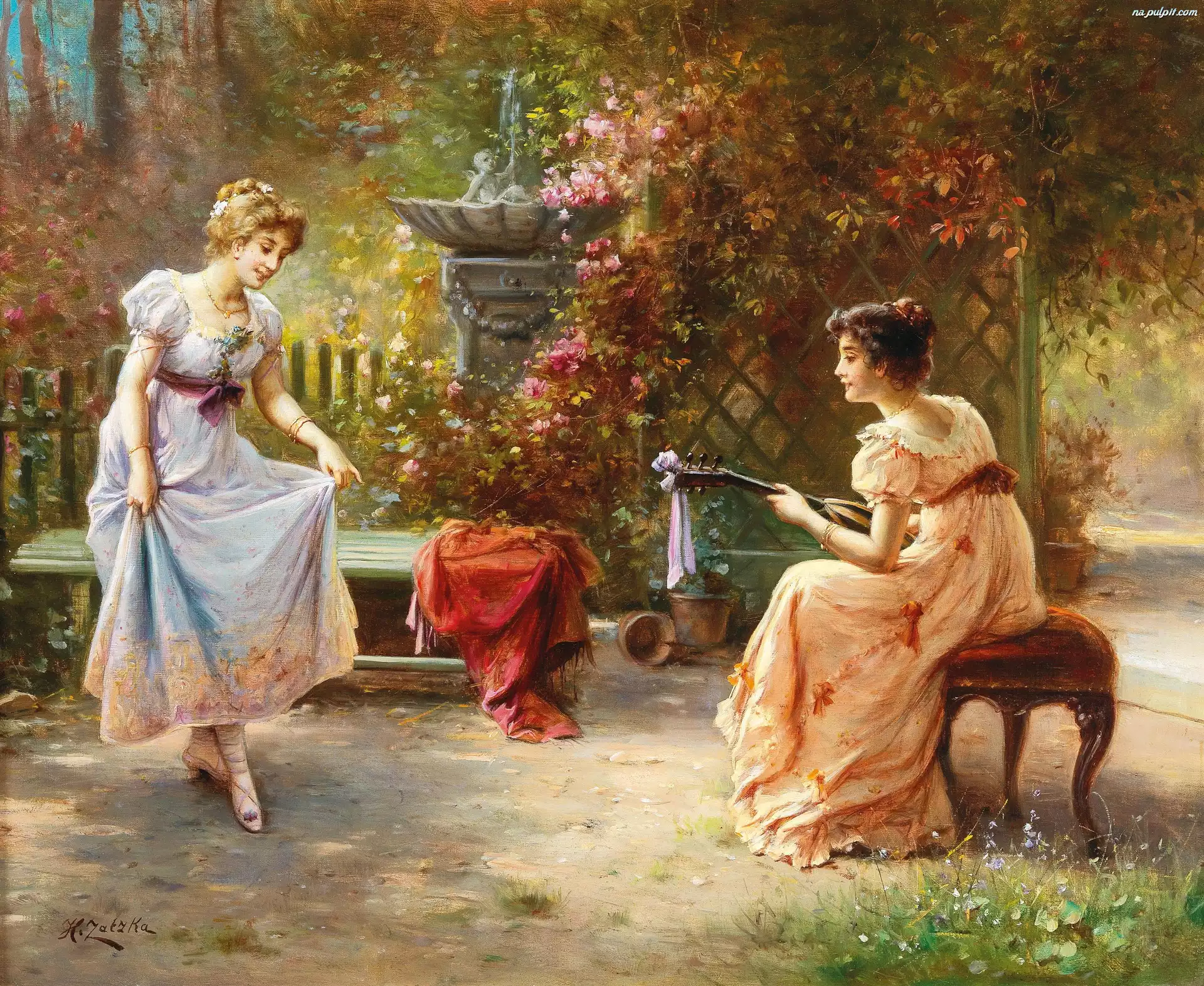 Obraz, Ogród, Ławka, Hans Zatzka, Malarstwo, Kobiety Na Pulpit