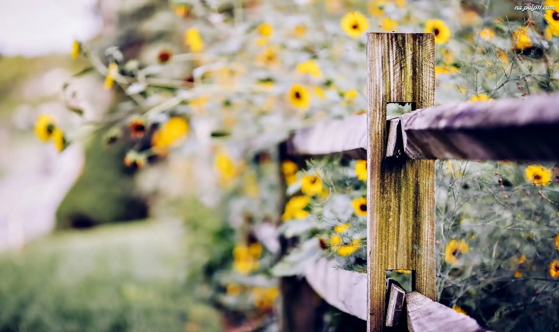 Ogród, Drewniany, Kwiaty, Żółte, Płot Na Pulpit