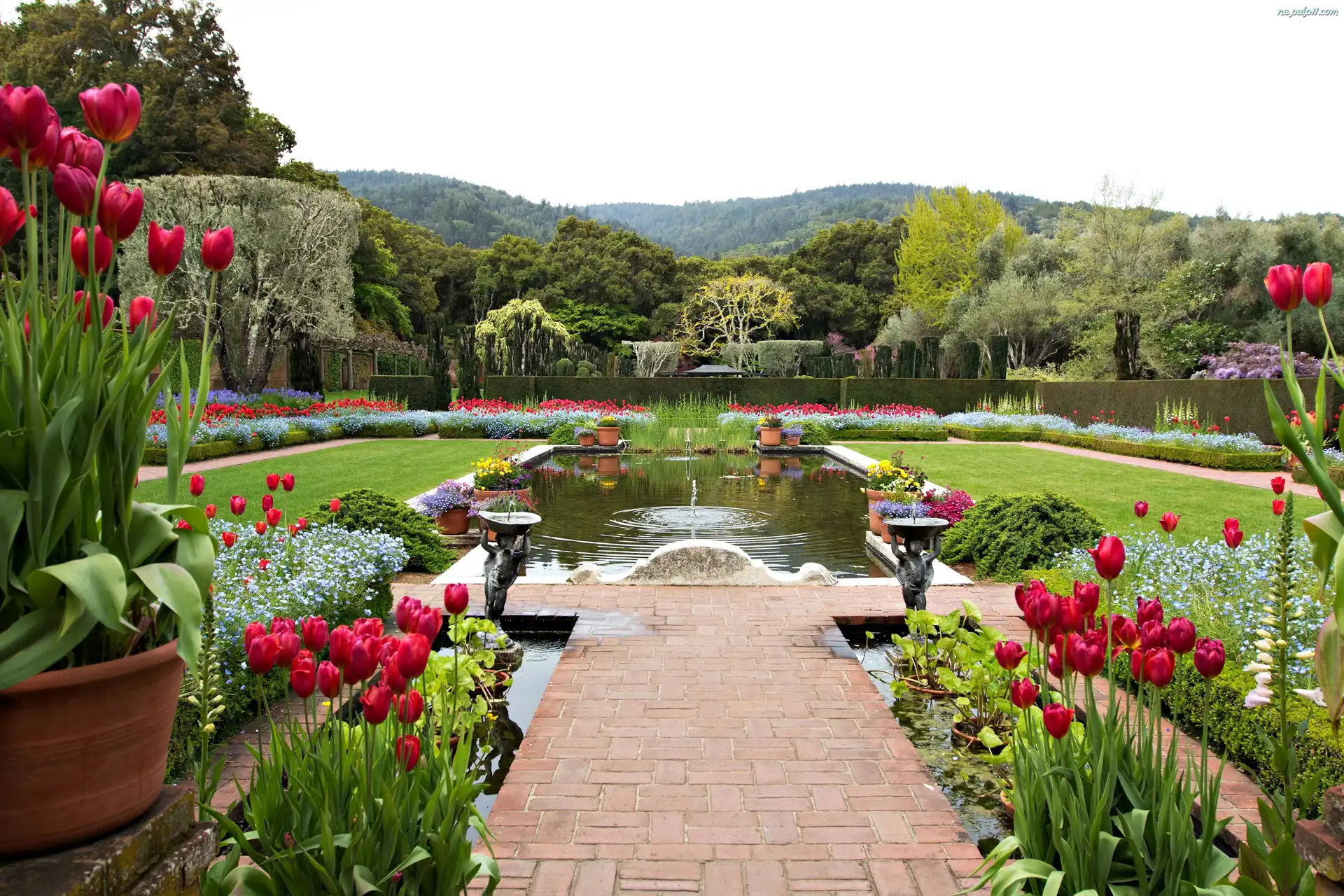 Sadzawka, Ogród, Tulipany Na Pulpit