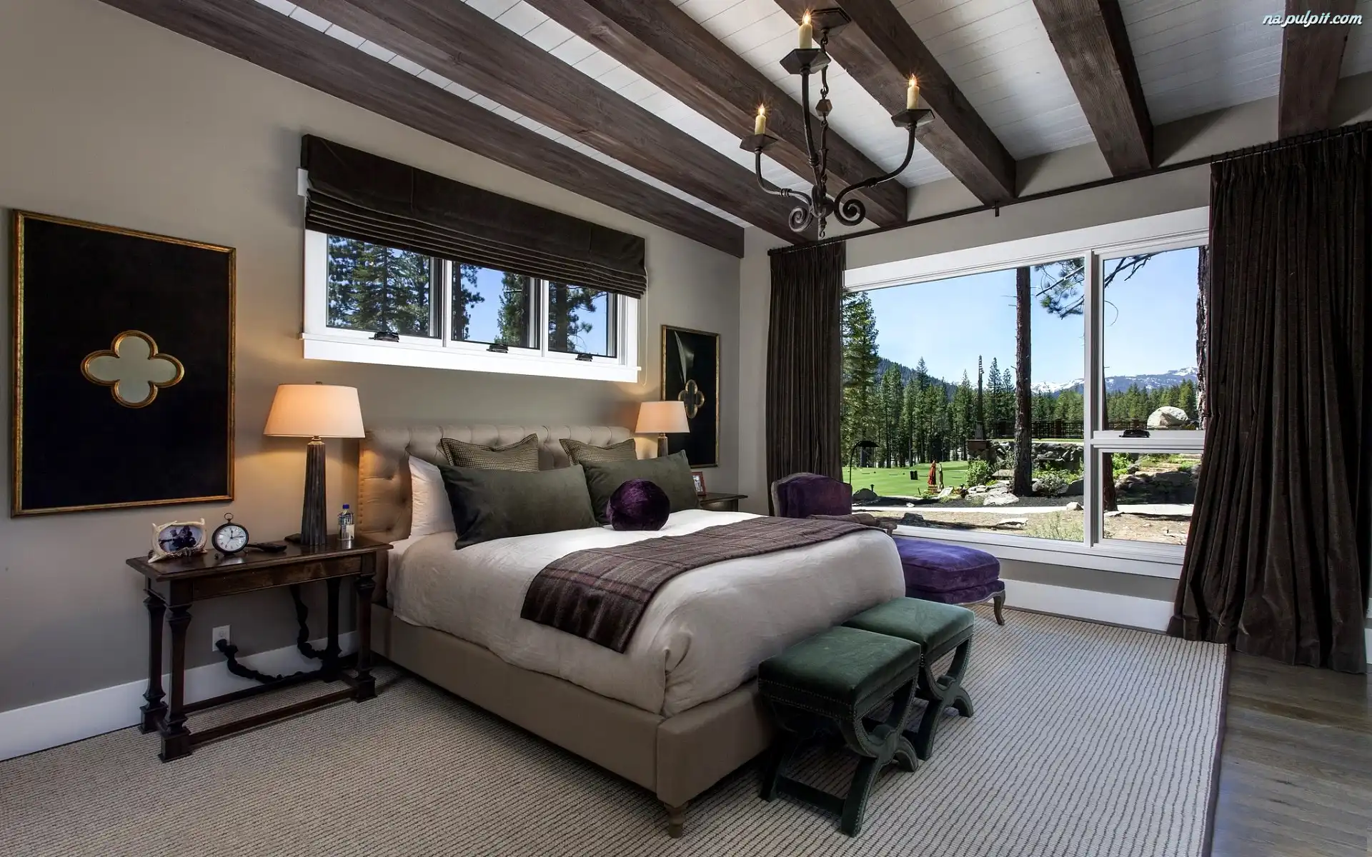 Ogród, Sypialnia, Wnętrze, Okno