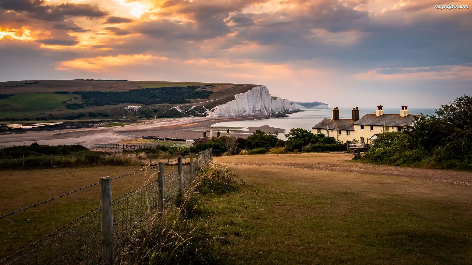 Ogrodzenie, Wzgórza, Klify, Beachy Head, Eastbourne, Anglia, Morze, Park Narodowy South Downs, Domy Na Pulpit |