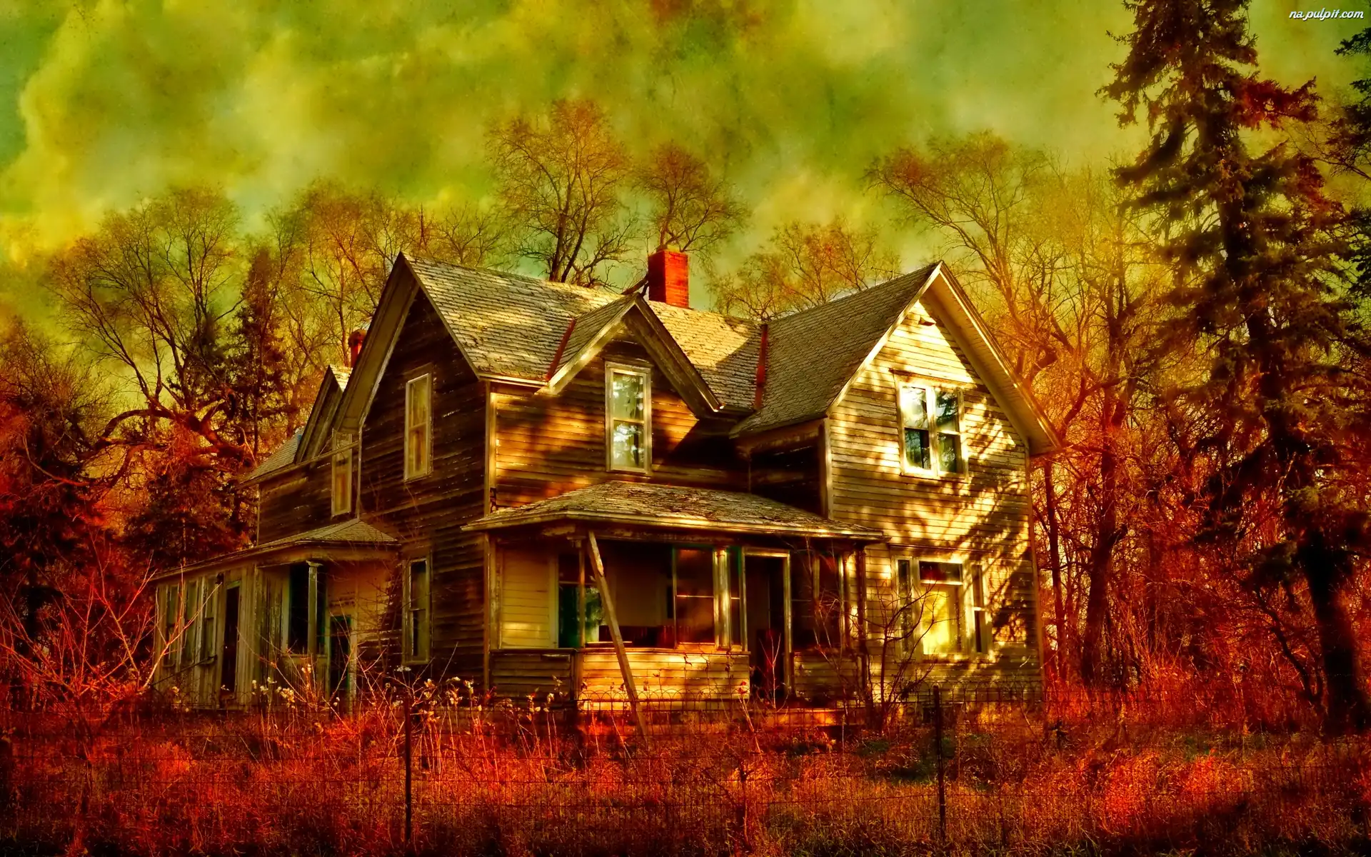 Ogrodzenie, Jesień, Dom, Drzewa Na Pulpit