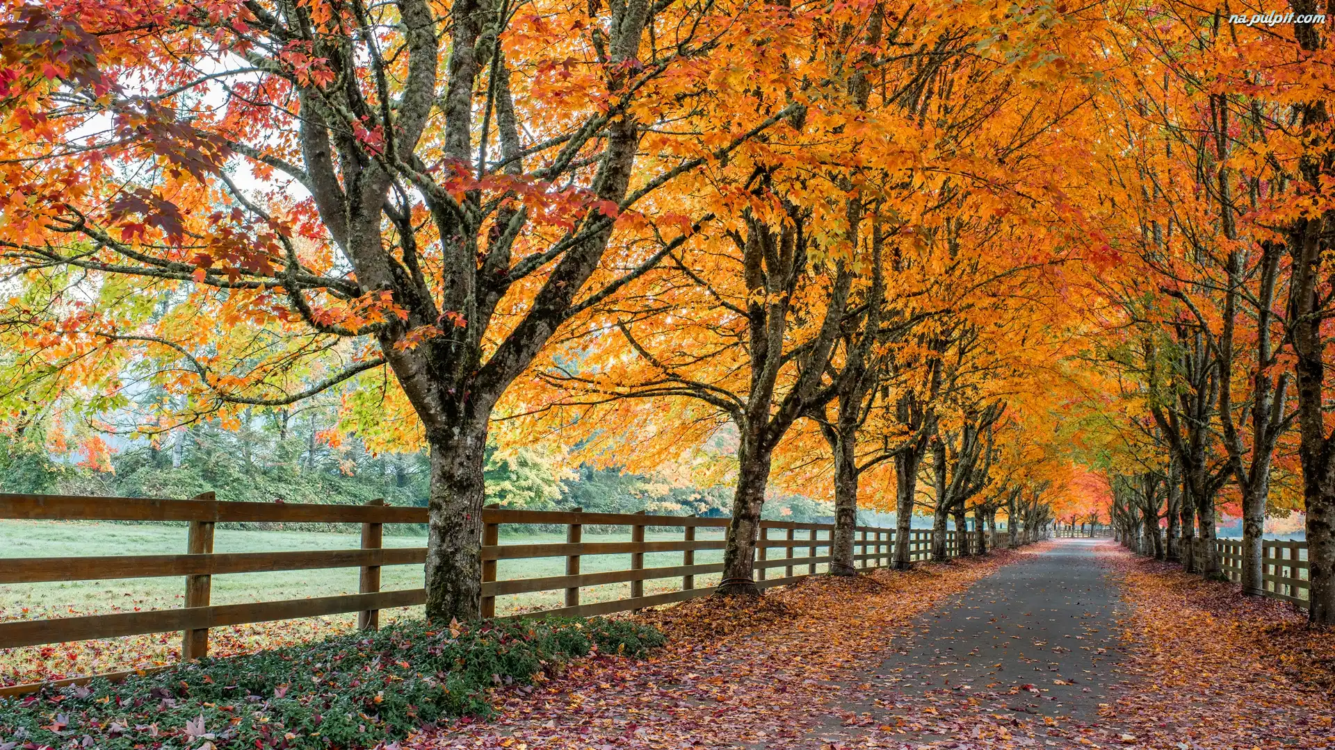 Ogrodzenie, Droga, Aleja, Drzewa, Jesień Na Pulpit