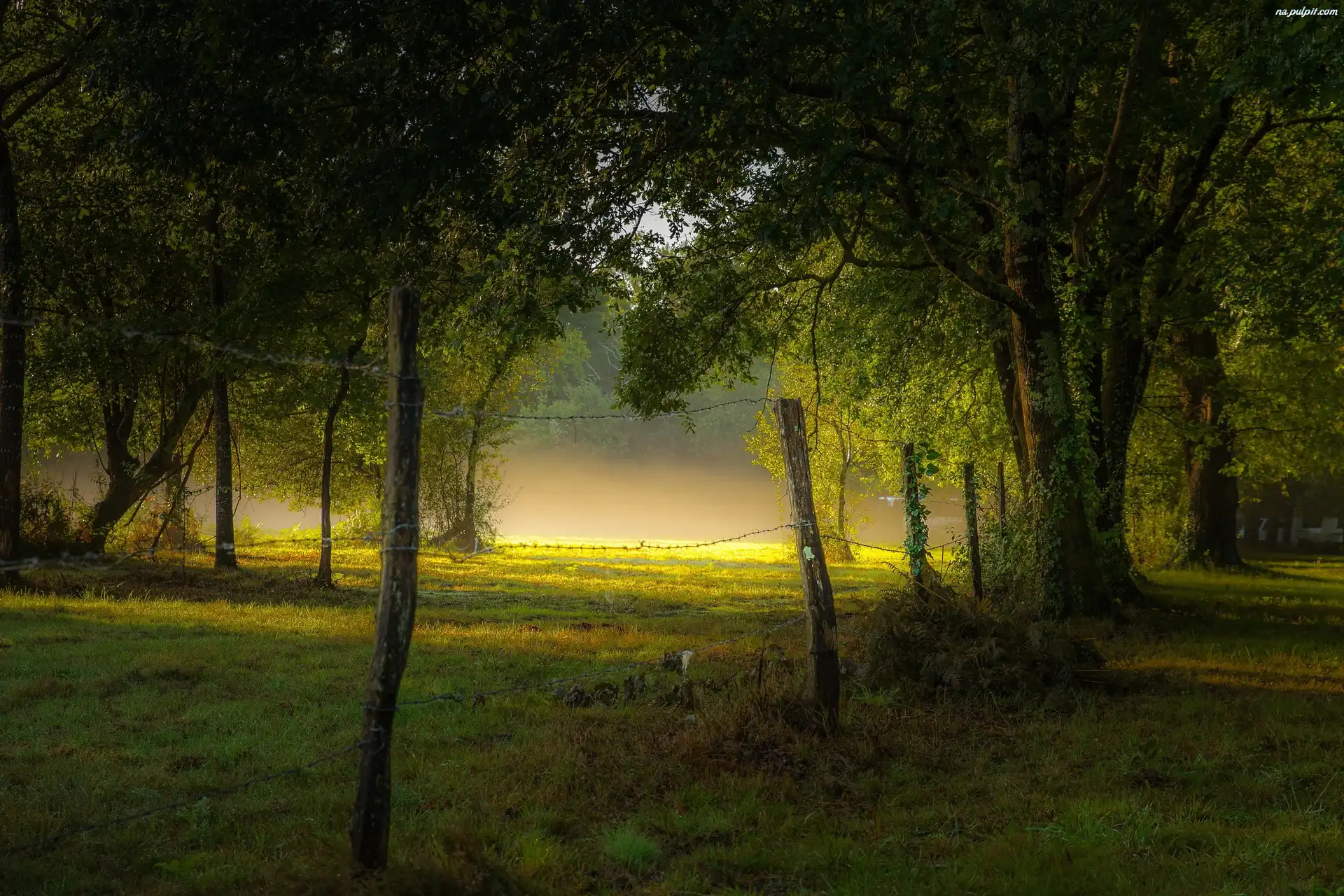Drzewa, Ogrodzenie, Mgła Na Pulpit