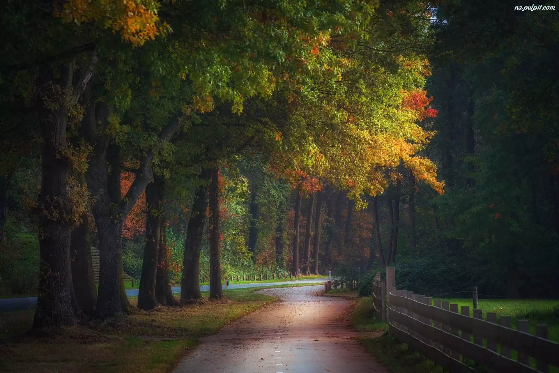 Ogrodzenie, Droga, Jesień, Las Na Pulpit