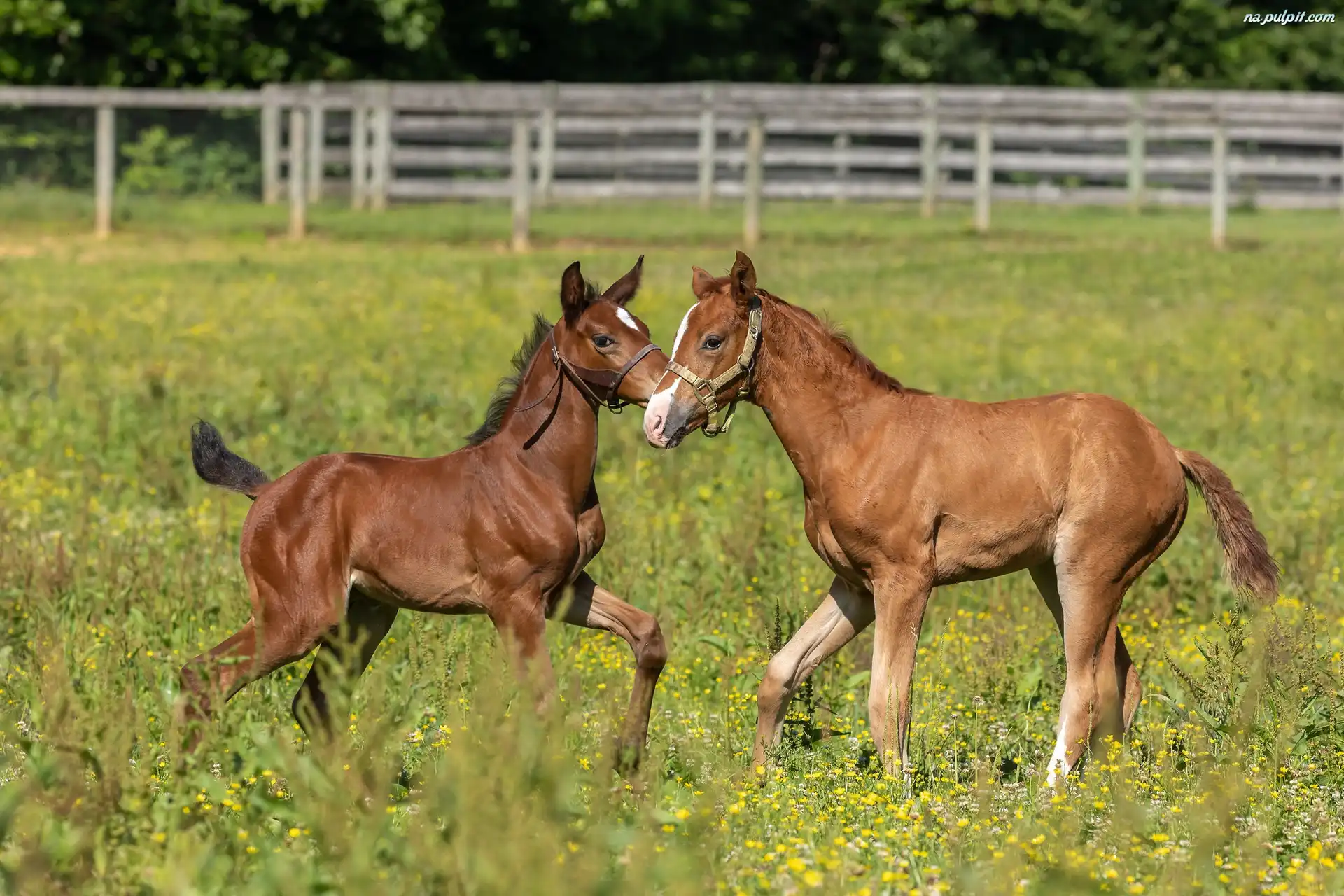 Ogrodzenie, Źrebaki, Dwa, Konie, Pastwisko Na Pulpit