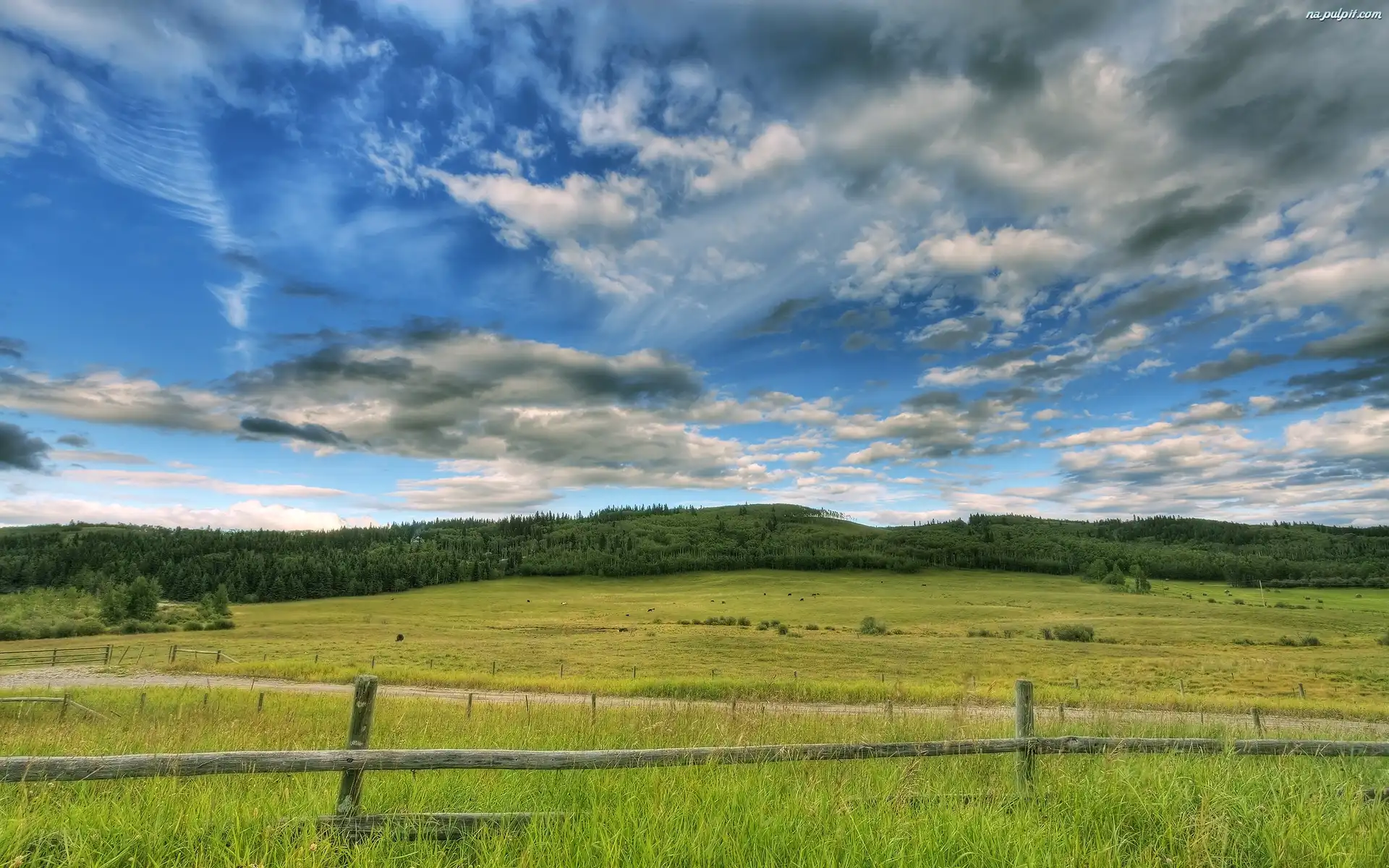 Ogrodzenie, Niebo, Las, Dróżka, Pole, Pochmurne Na Pulpit