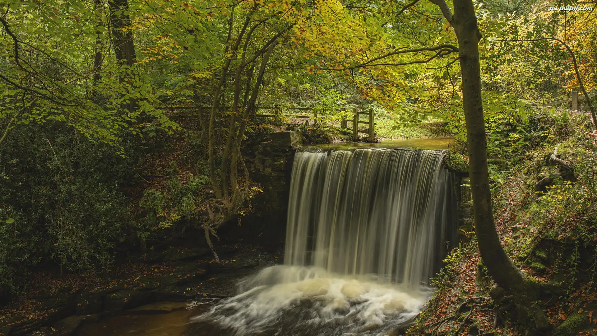 Ogrodzenie, Las, Rzeka, Wodospad, Jesień Na Pulpit