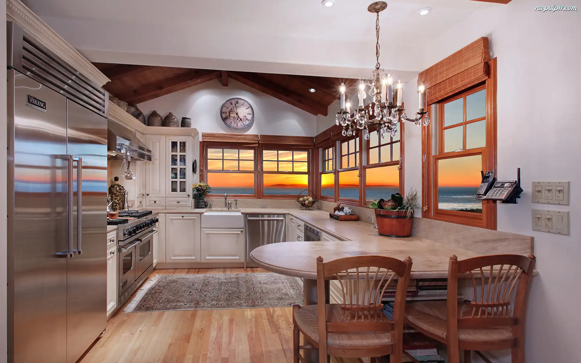 Okna, Krzesła, Kuchnia, Żyrandol Na Pulpit
