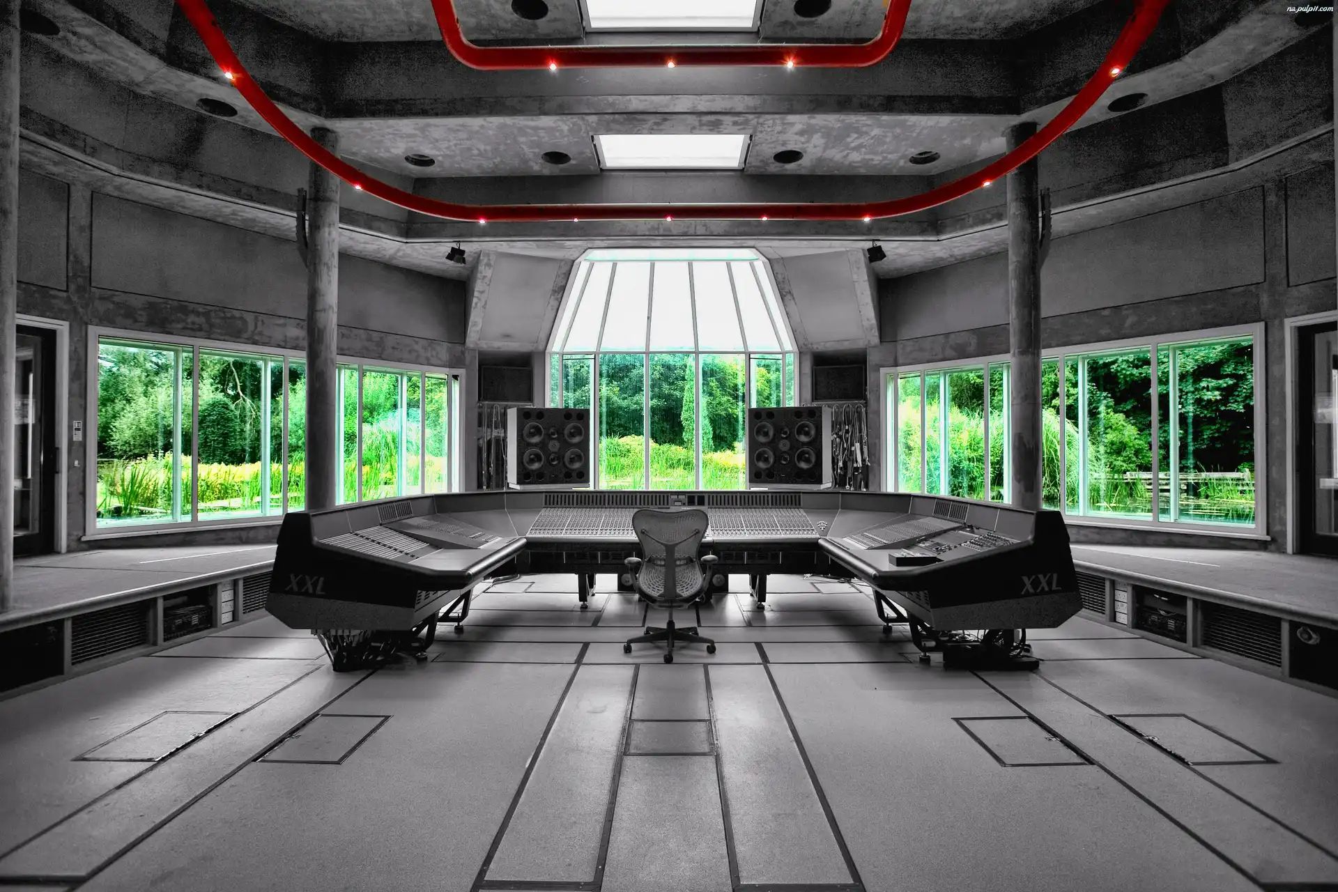 Okna, Stół, Nagraniowe, Studio, Głośniki