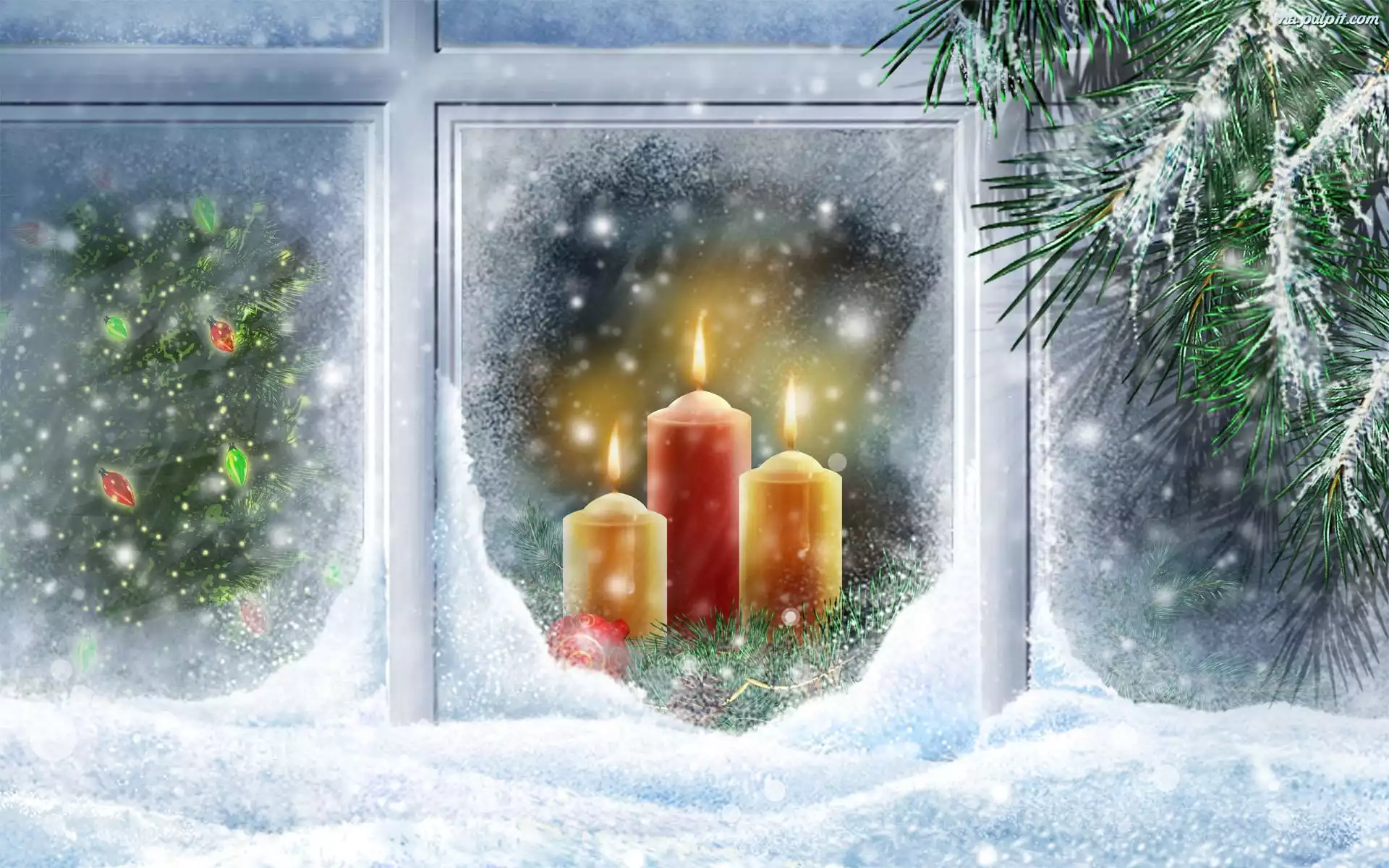 Okno, Świeczki, Narodzenie, Boże, Choinka Na Pulpit