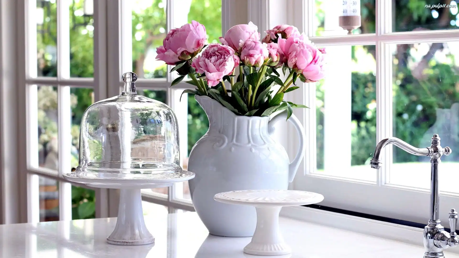 Okno, Patery, Piwonie, Bukiet, Dzbanek Na Pulpit