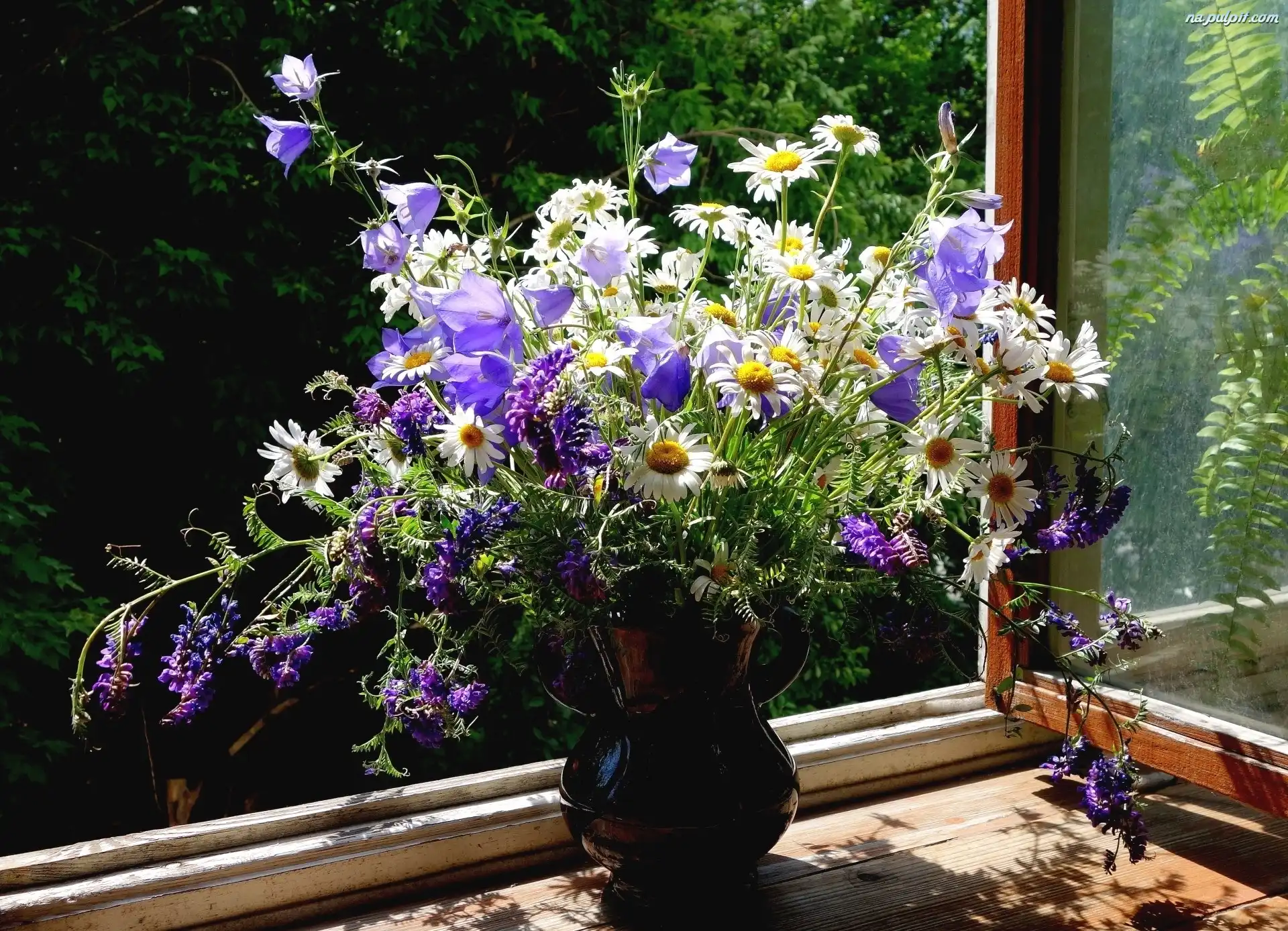 Okno, Polnych, Bukiet, Kwiatów Na Pulpit