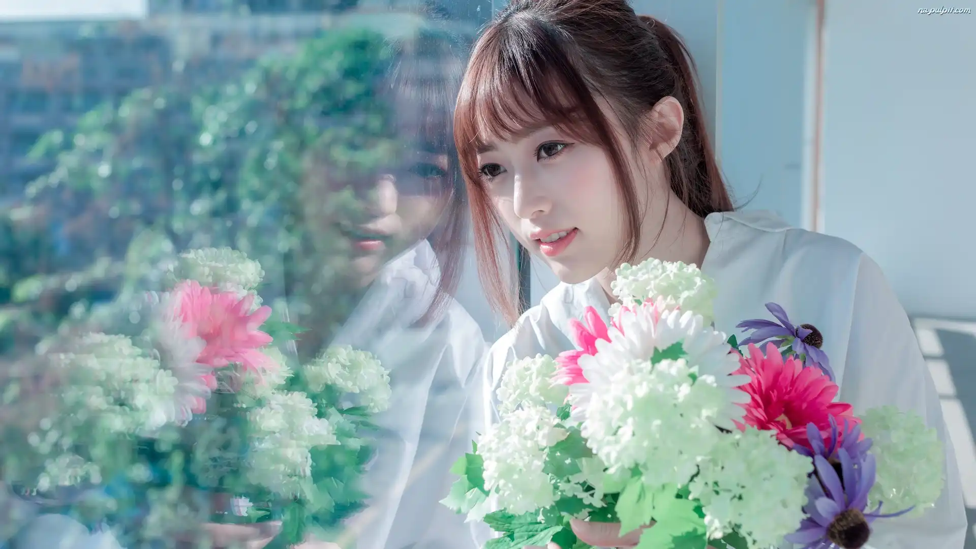 Okno, Bukiet, Kobieta, Kwiaty Na Pulpit