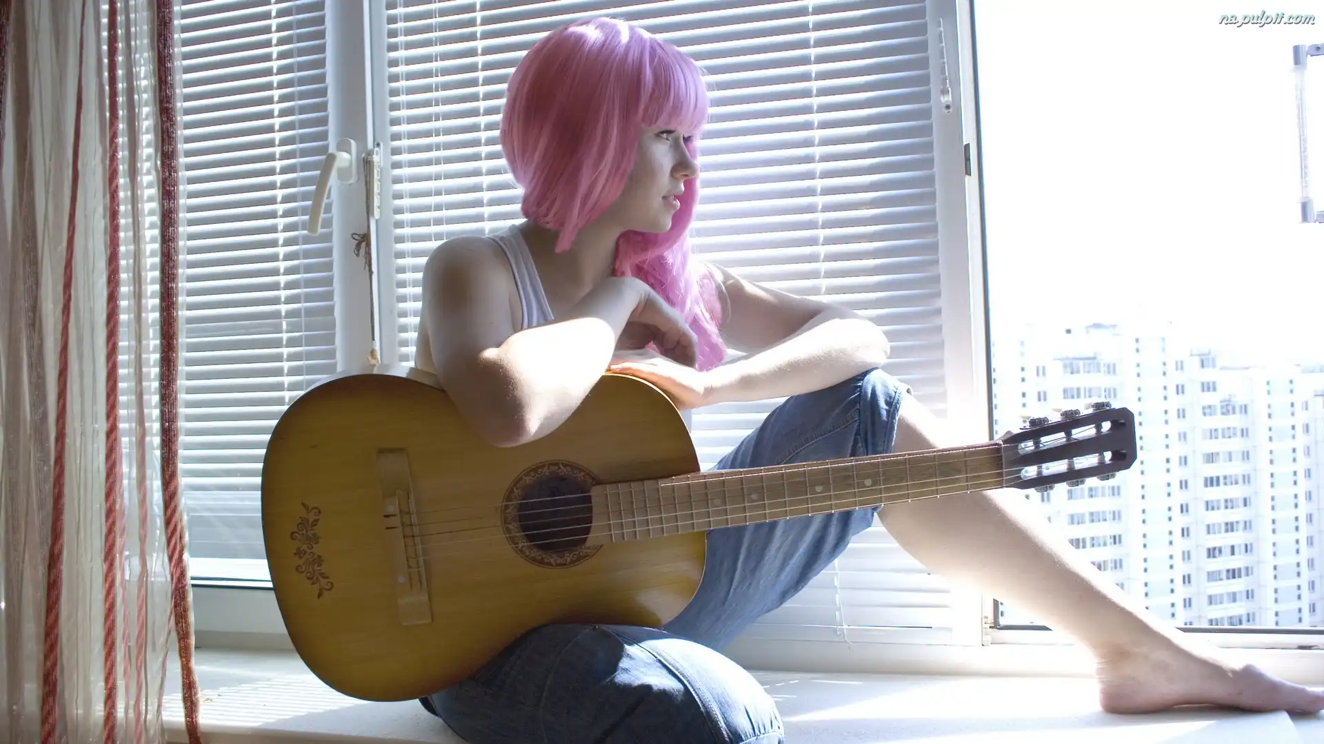Okno, Dziewczyna, Młoda, Gitara