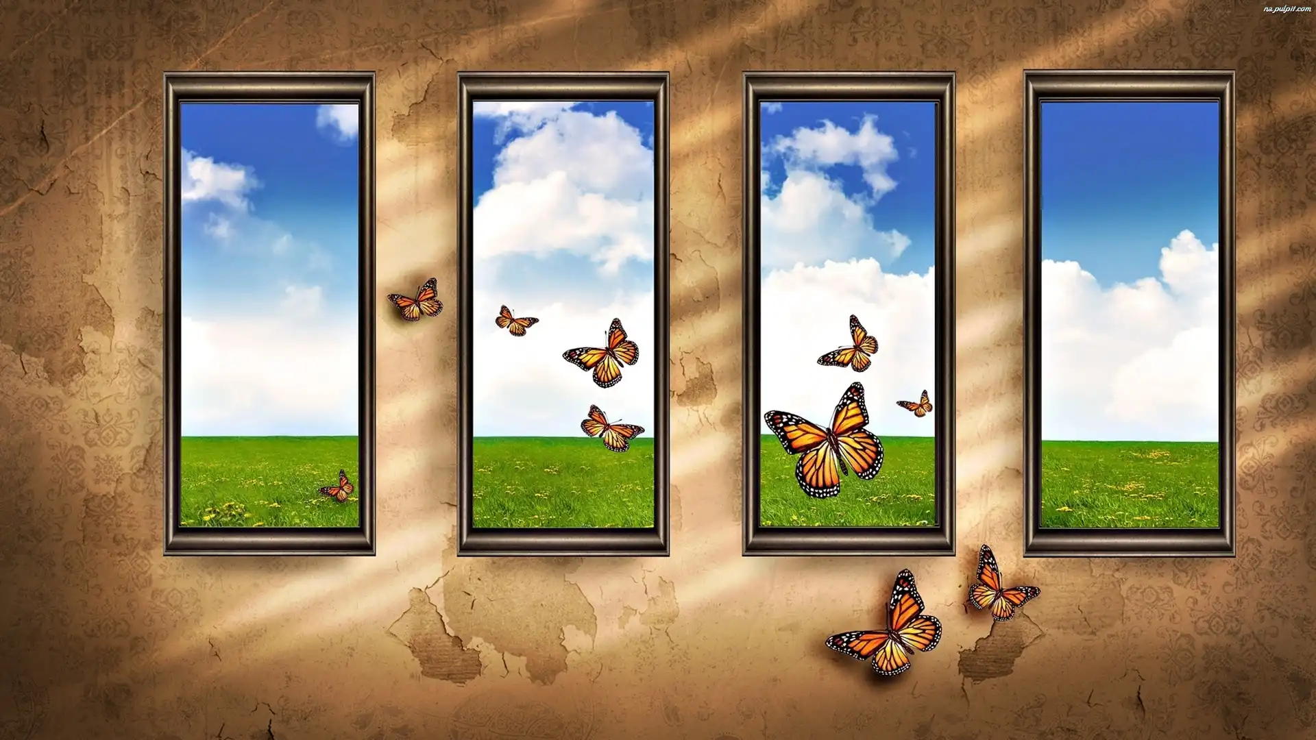 Motyle, Okno, Łąka Na Pulpit