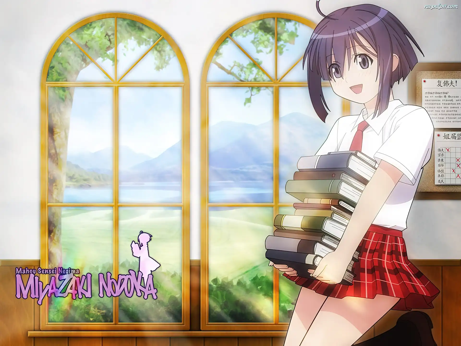 okno, kobieta, Mahou Sensei Negima, książki Na Pulpit