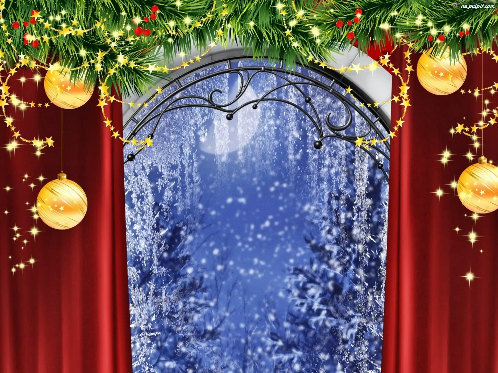 Okno, Bombki, Święta, Zimowe Na Pulpit