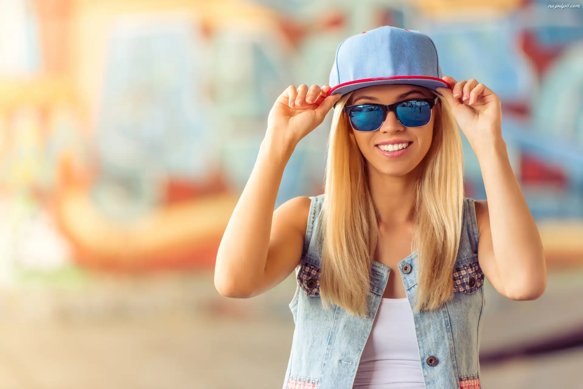 Okulary, Blondynka, Dziewczyna, Czapka
