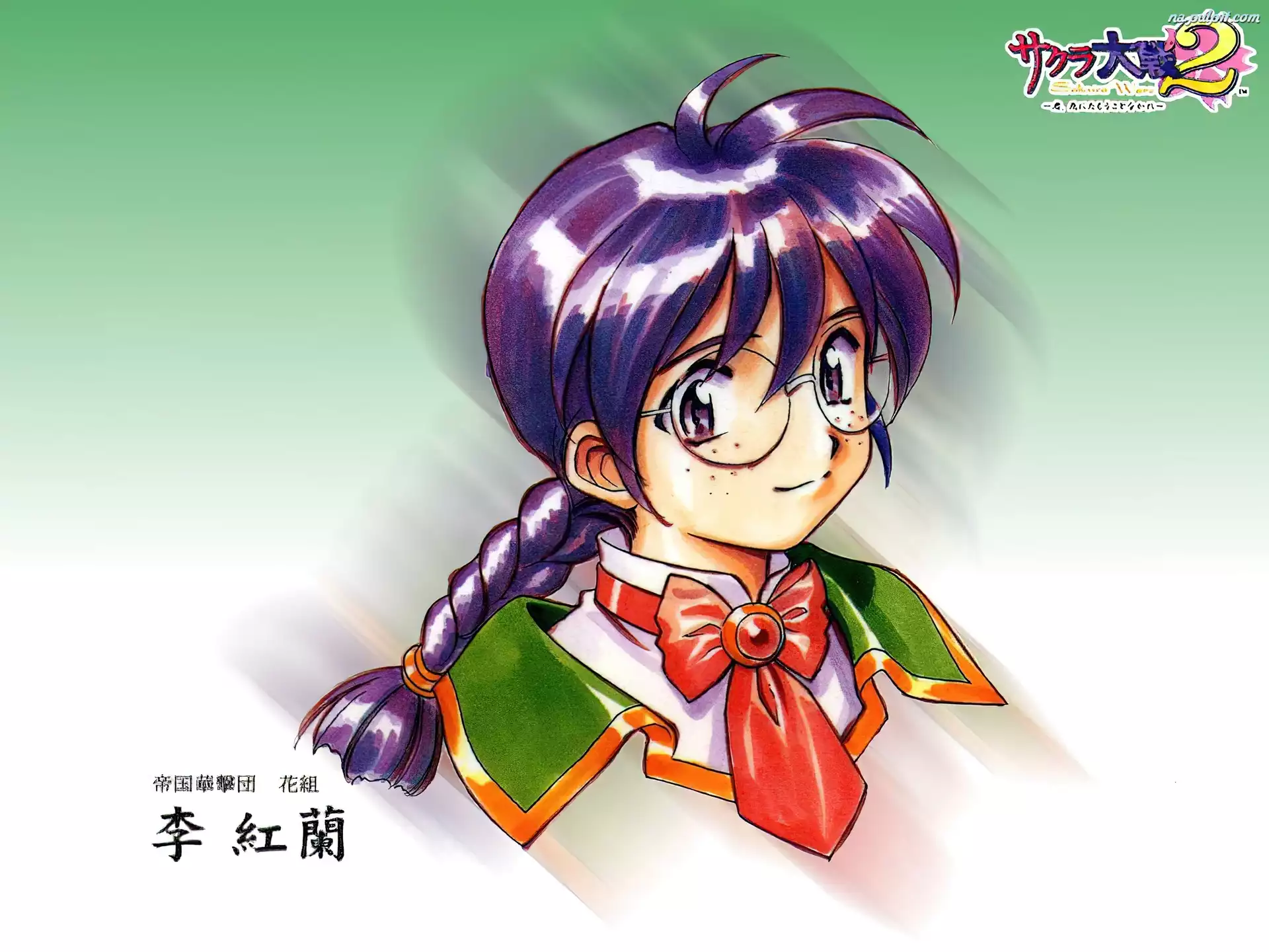 okulary, Sakura Wars, fioletowe włosy Na Pulpit