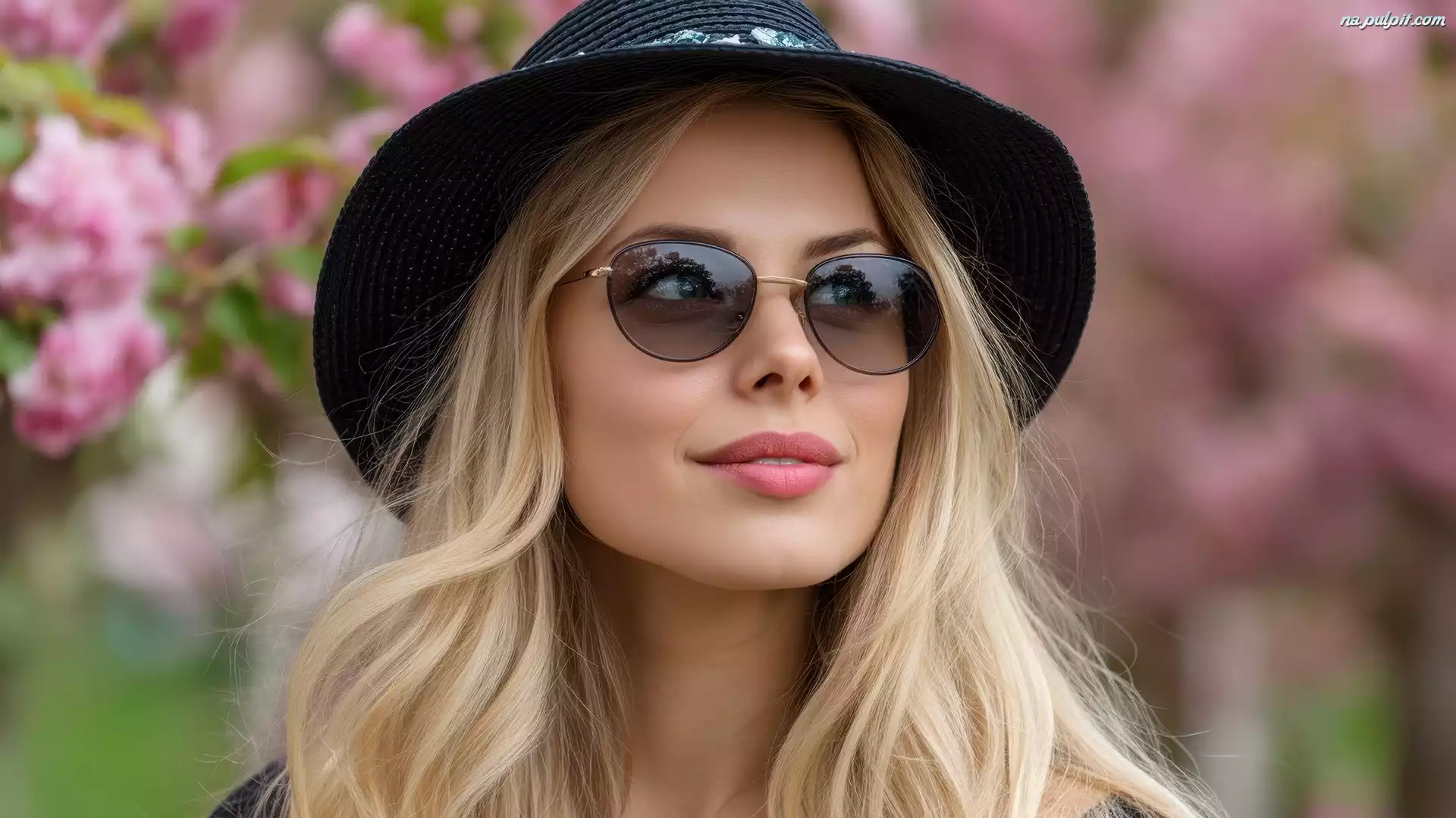 Czarny, Kobieta, Blondynka, Okulary, Długowłosa, Kapelusz
