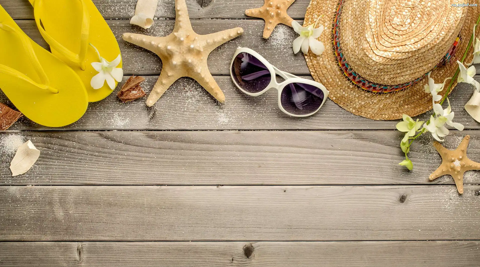 Okulary, Lato, Kompozycja, Klapki, Kapelusz, Rozgwiazdy Na Pulpit