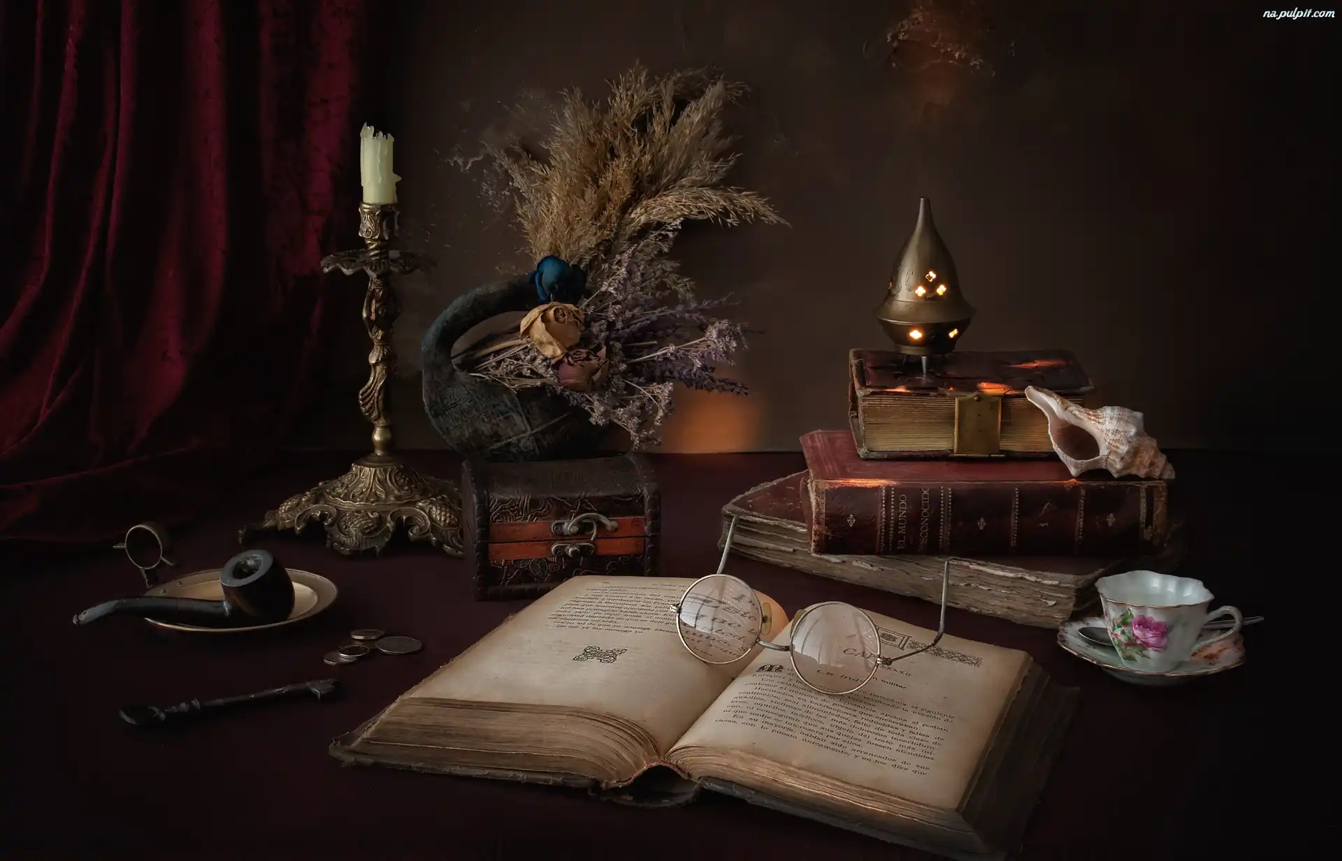 Okulary, Bibeloty, Stare, Kompozycja, Åšwieca Na Pulpit