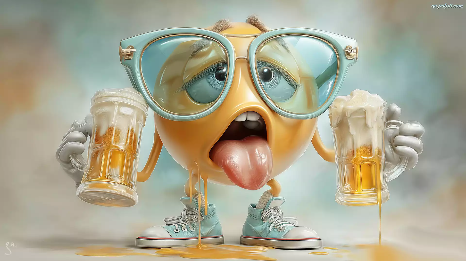 Trampki, Emotikon, Piwo, Okulary, Buźka, Grafika AI Na Pulpit