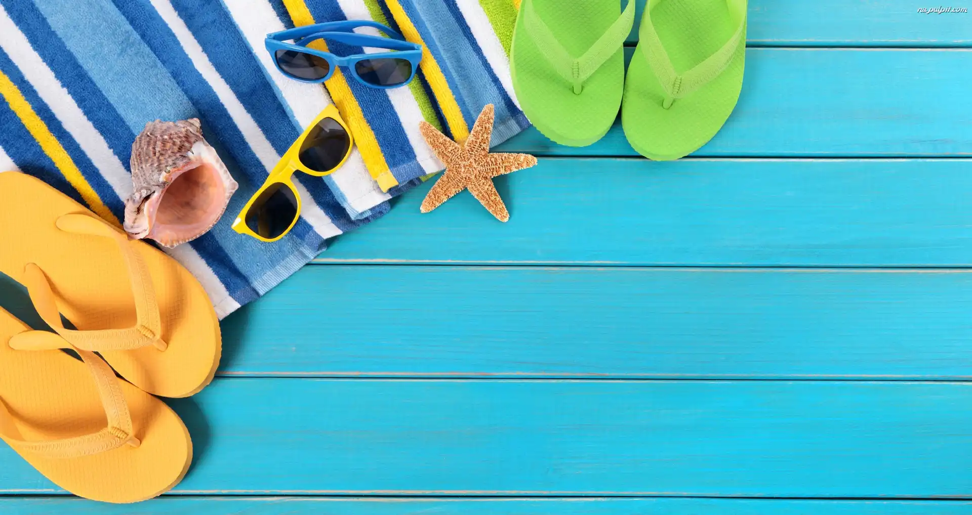 Wakacje, Okulary, Rozgwiazda, Ręcznik, Klapki, Lato, Muszla