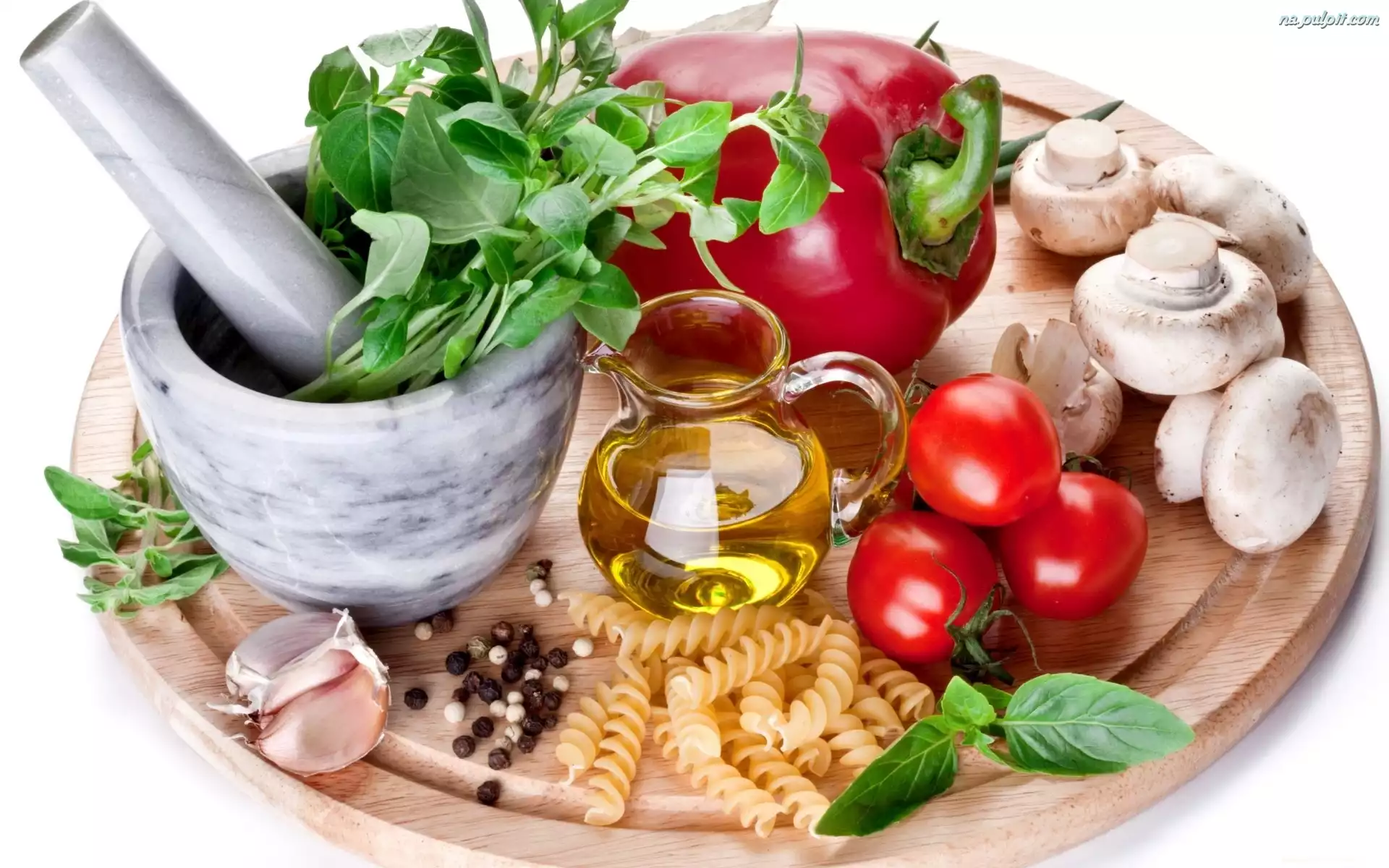 Olej, Pieczarki, Pomidory, Bazylia, Papryka Na Pulpit