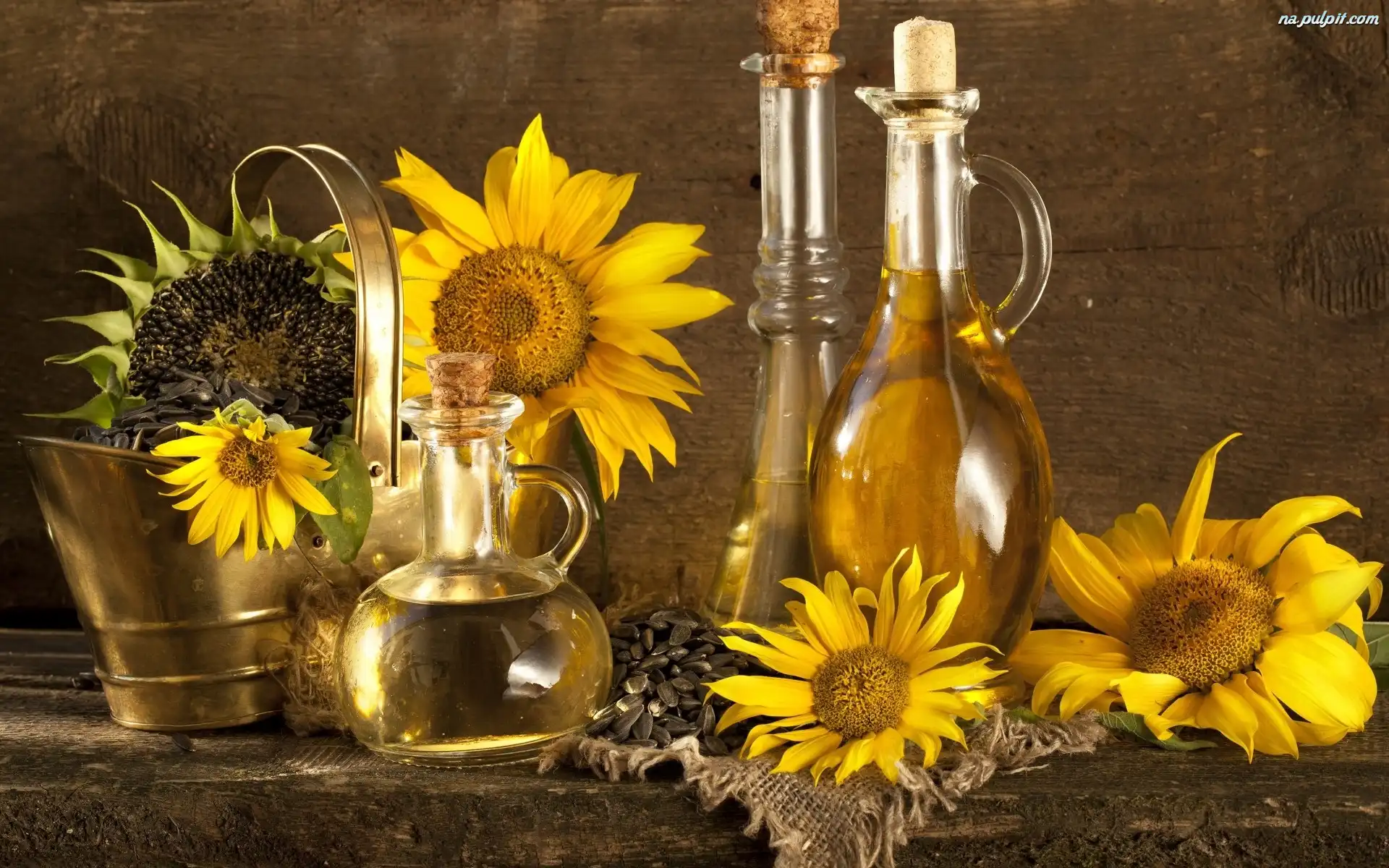Oliwa, Słonecznika, Kwiaty, Butelki