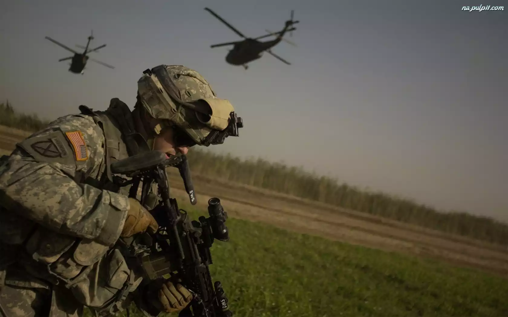 Helikoptery, Żołnierz, Karabin Na Pulpit
