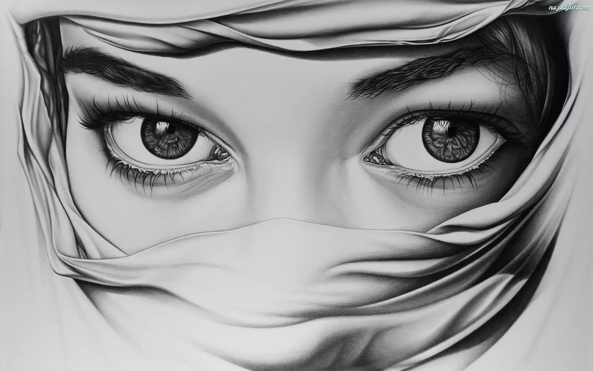 Ołówek, Spojrzenie, Oczy, Kobieta, Rysunek