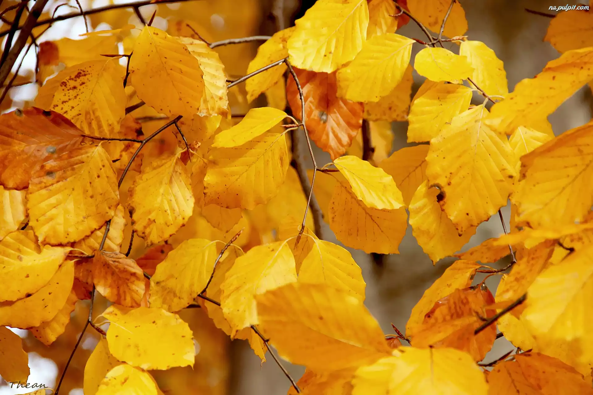 Jesień, Żółte, Liście Na Pulpit
