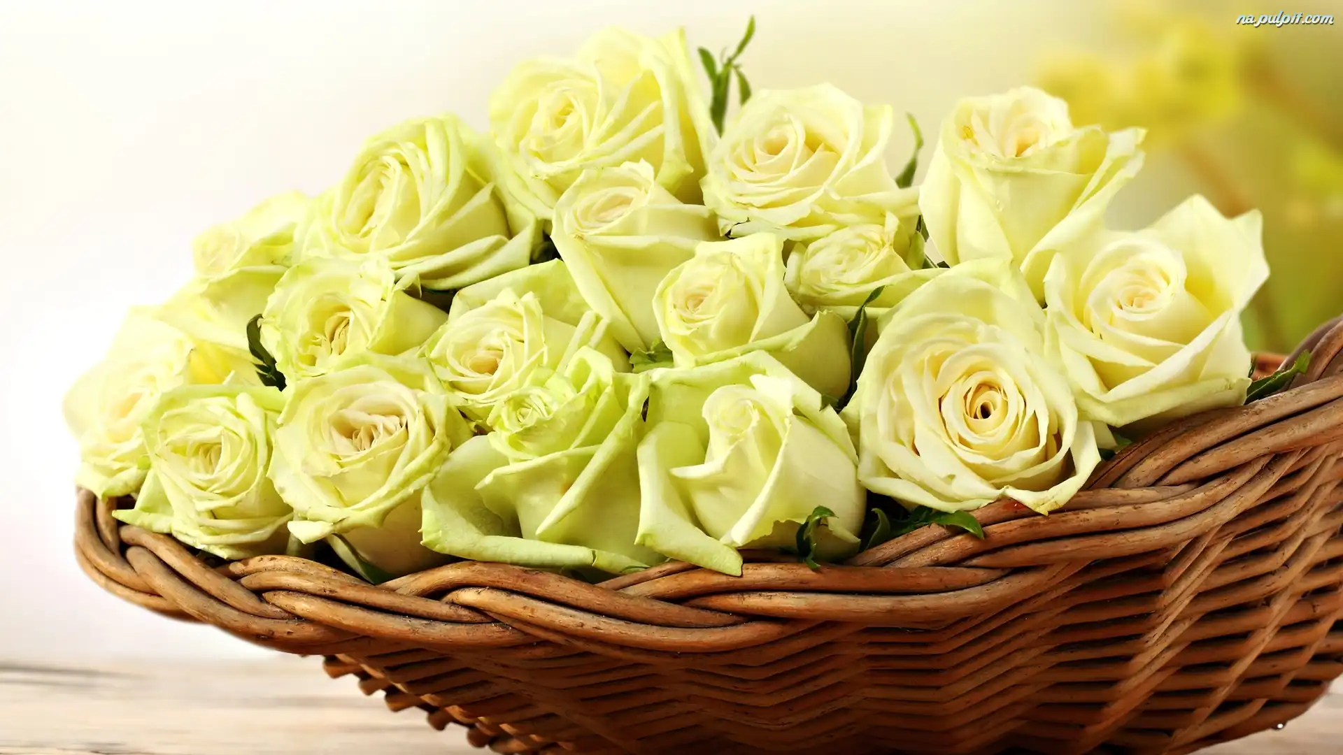 Kosz, Żółte, Róże Na Pulpit
