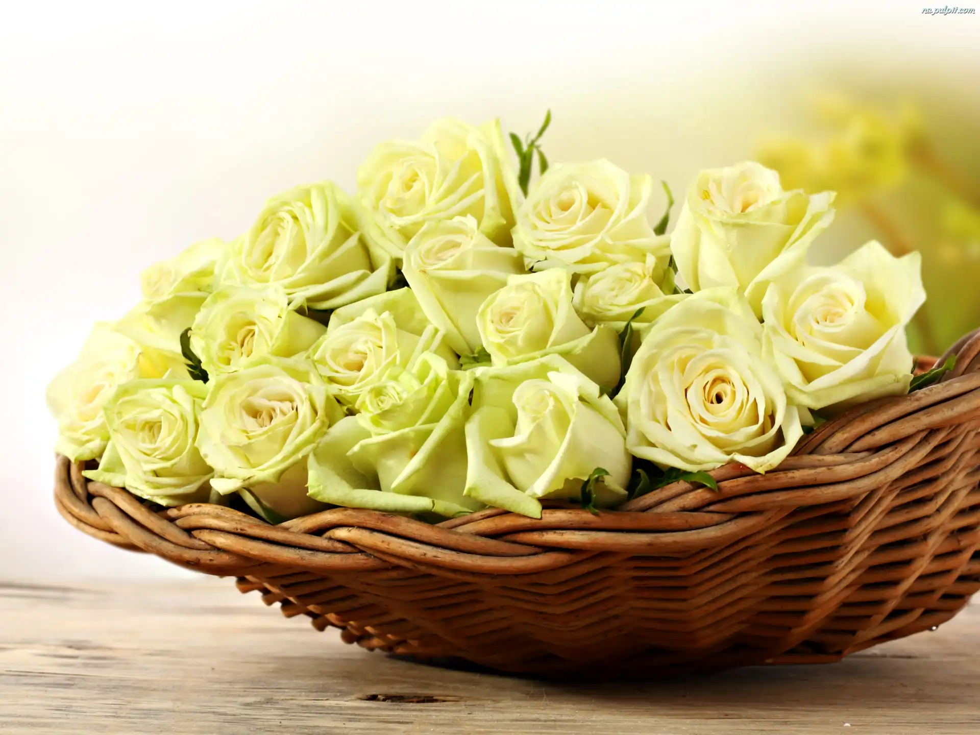 Koszyk, Żółte, Róże Na Pulpit