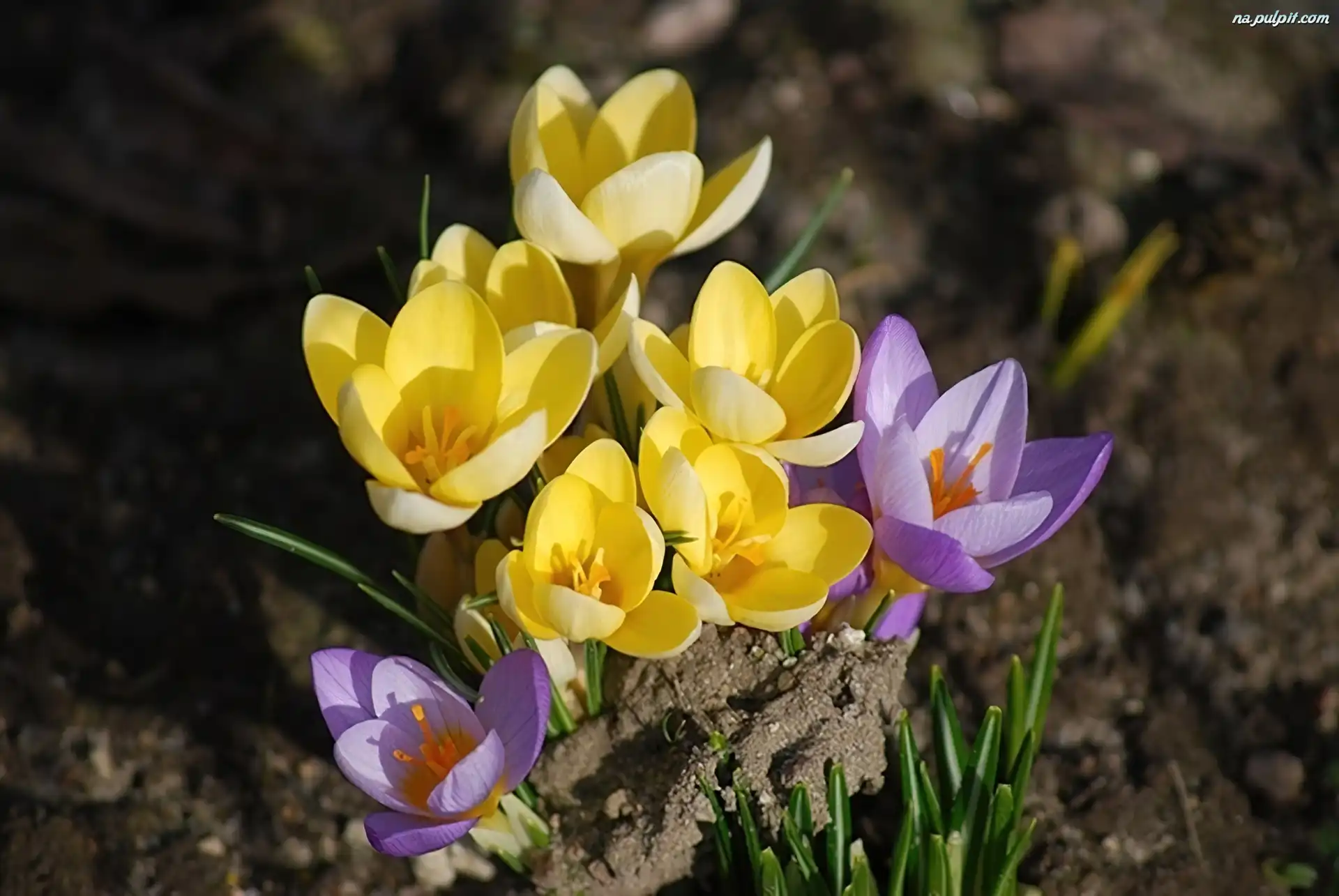 Krokusy, Żółte, Fioletowe Na Pulpit