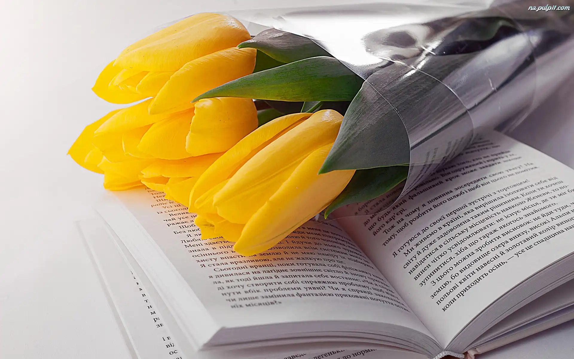 Książka, Żółte, Tulipany Na Pulpit
