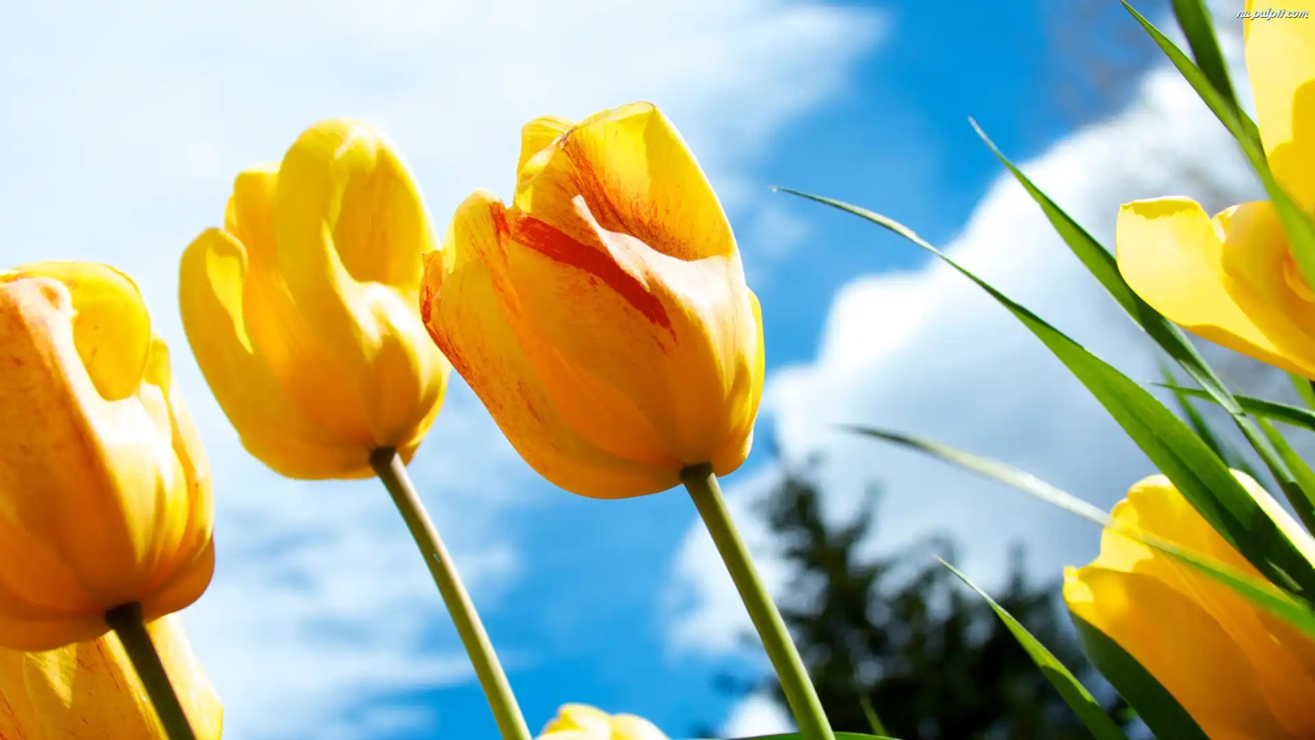 Niebo, Żółte, Tulipany Na Pulpit