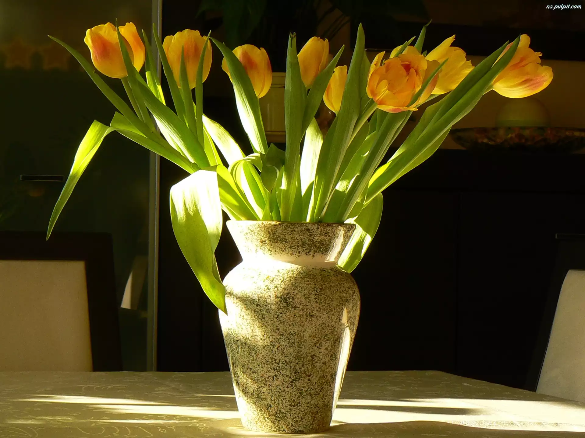 Wazon, Żółte, Tulipany Na Pulpit