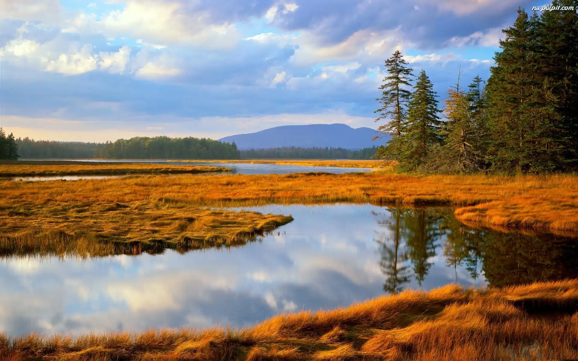 Niebo, Trawy Biedronka, Trawy Jesień, Krajobraz Wody, Trawa, Krople Jesień, Łazienki Jesień, Liście Szron, Uschnięte, Liście Drzewa, Jesień, Las Kamienie, Jesień, Drzewo Rosy, Trawy, Gąszcz, Zielony, Krople Zielona, Niebo, Błyskawice, Trawa, Piłka, Zachmurzone Trawa, Jeziora, Tafla, Zielona Jesień, Drewniany Most, rzeczka trawa, rosa