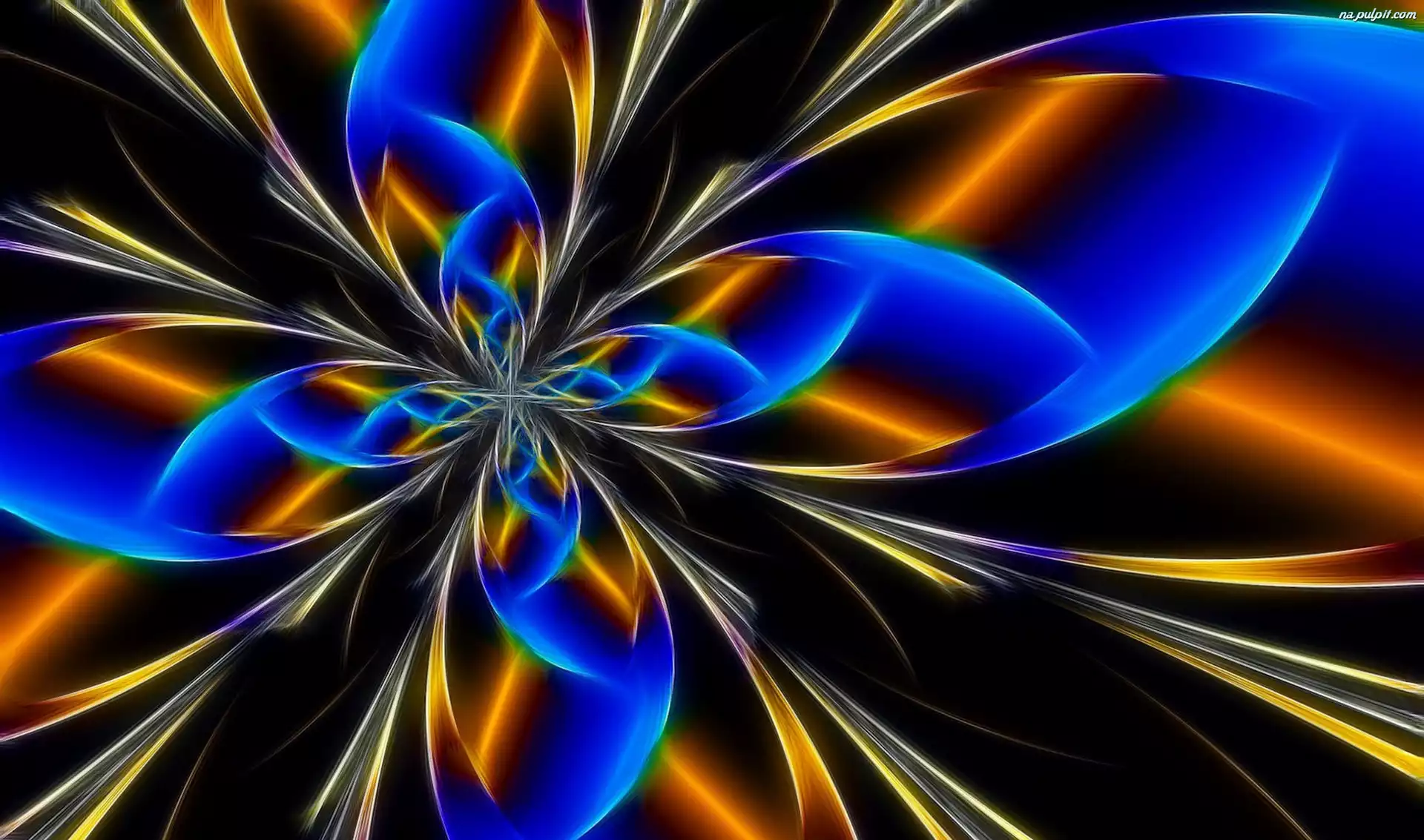 Żółto, Grafika, Fraktal, Czarny, Niebiesko, Kwiat Na Pulpit