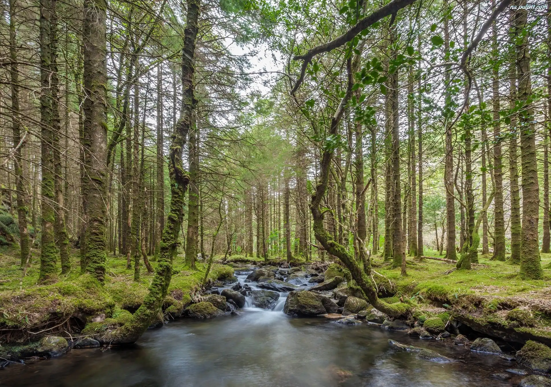 Omszałe, Strumyk, Rzeka, Drzewa, Las, Kamienie Na Pulpit